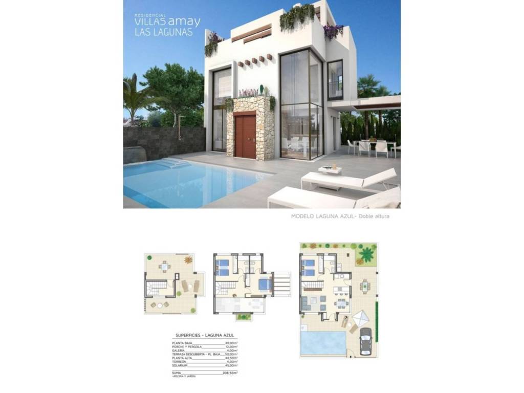 Luminosa y relajante Villa con parcela y piscina independiente, de 3 habitaciones y 3 baños con solárium en planta alta y vistas a las lagunas!