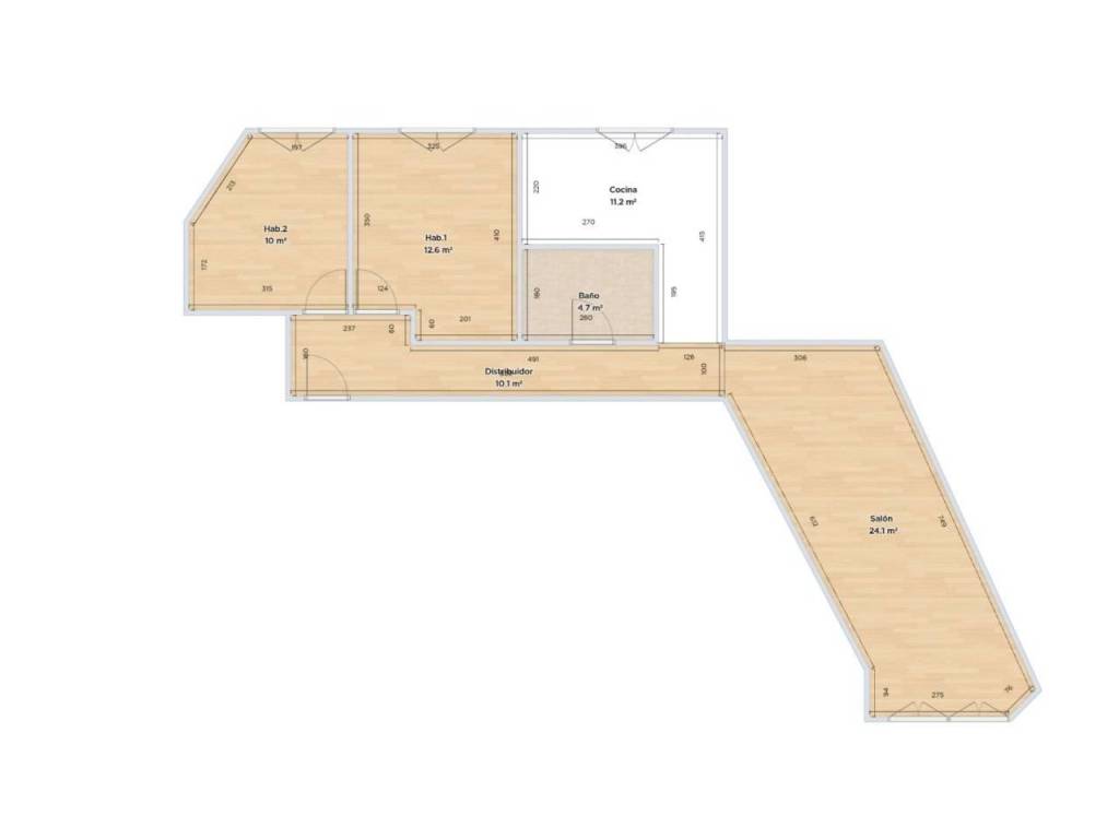 La vivienda consta de amplio salón comedor, 2 habitaciones, cocina totalmente equipada y cuarto de baño con bañera. Dispone de parcela de garaje directo incluido en el precio.