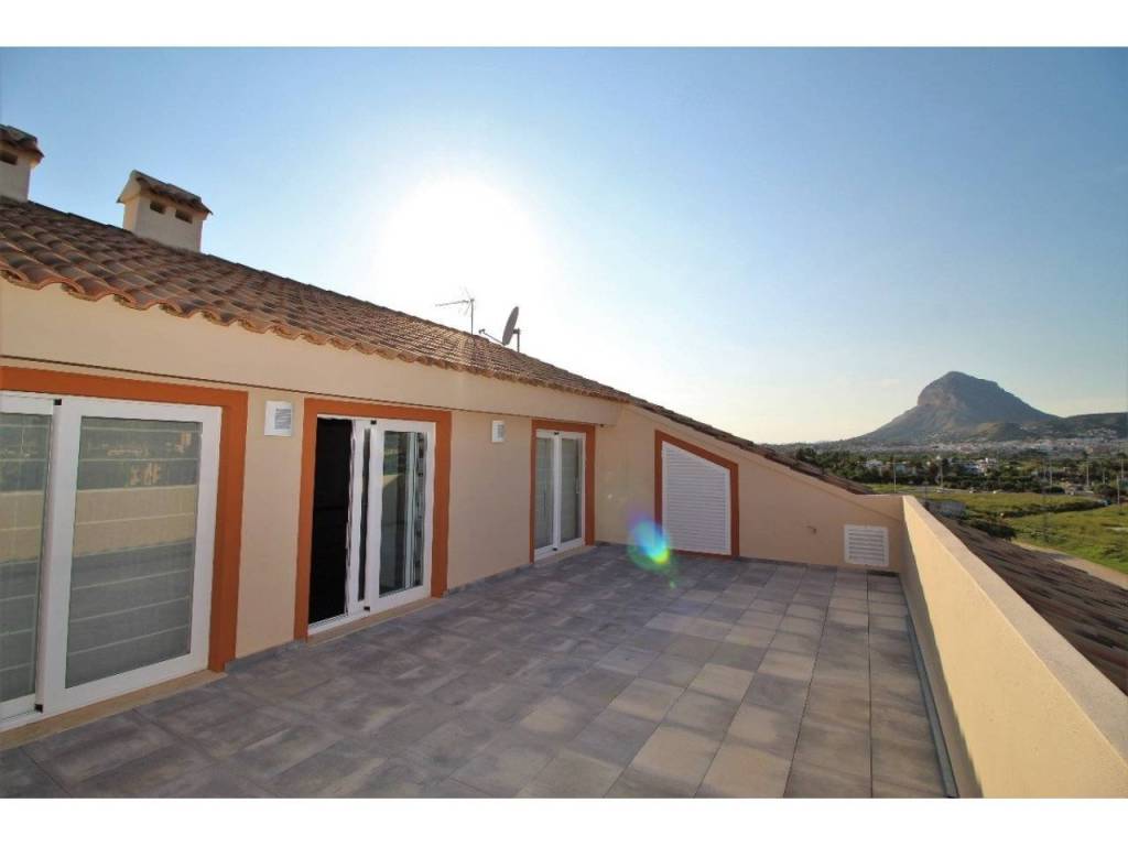 This stunning luxury Duplex Penthouse is located in a very well-maintained urbanization very close from the Arenal beach of Javea. This exceptional property has been completely refurbished and redistributed with high-quality luxury construction materials and immaculate finishings throughout. The duplex is located on the third floor, it can be accessed by lift and it is distributed on two levels, connected by an internal staircase. Upon entering the house we find ourselves in the entrance hall which gives access to the spacious and very bright living/ dining room with its own east-facing terrace, offering the possibility to enjoy the sun during the mornings and afternoons and breathtaking views of the Montgo, the Cabo de San Antonio and the surroundings. Additionally on the ground floor there is the fully equipped independant kitchen with high-quality appliances such as a big induction hob, a Siemens dishwasher, a smeg coffee machine and oven and a Liebherr refrigerator, all of these being completely integrated into the kitchen furniture. On this floor there is also a spacious double bedroom with an enormous fitted wardrobe and an en-suite bathroom with its own bathtub and large shower. The guest toilet completes the excellent comfort of this area of the house.