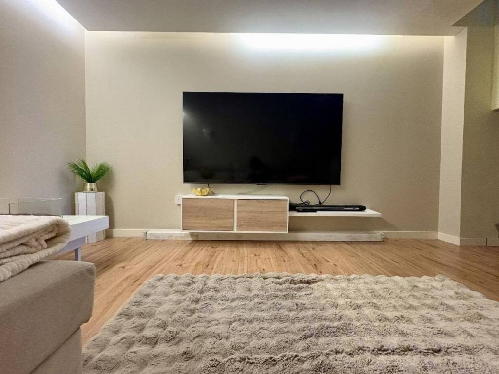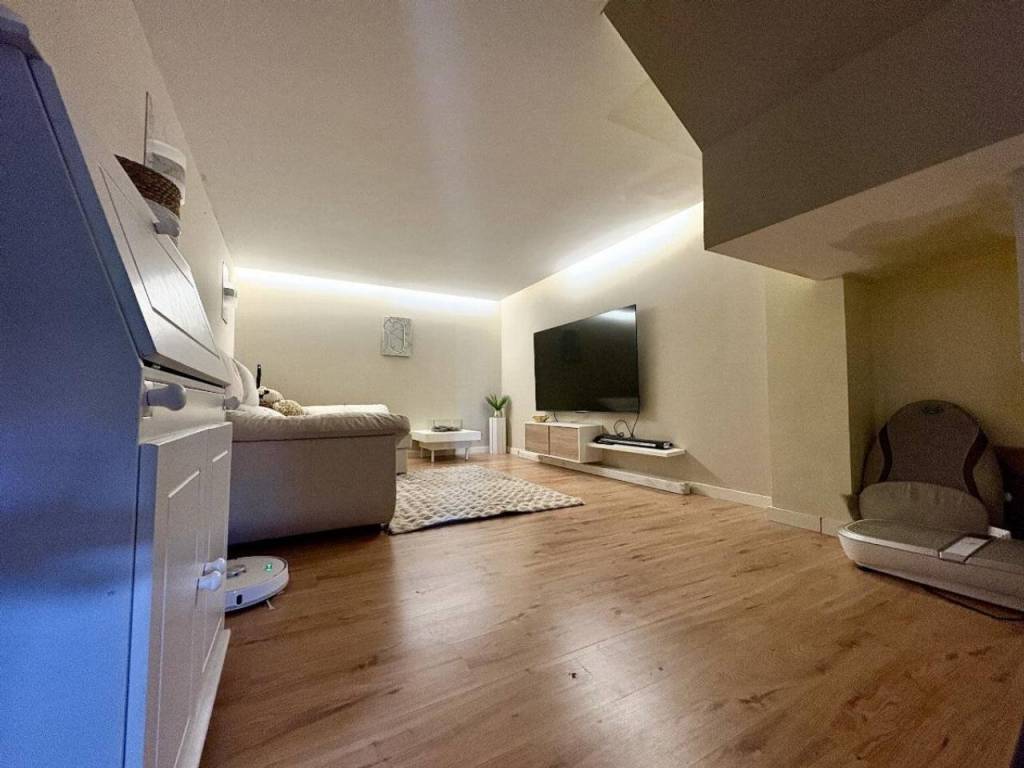 On the lower floor, a cozy home cinemastyle living room, perfect for creating a second family space.