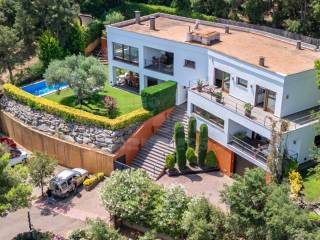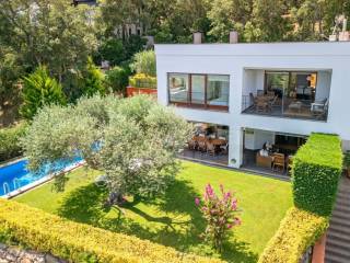 Exceptional property with panoramic views of the sea located in the Golfet area, near the Cap Roig Botanical Garden, in Calella de Palafrugell. Well-equipped and built with high quality materials. Beautiful well-oriented garden and a swimming pool. The house is distributed over three levels plus an upper terrace, with an elevator. With a large entrance hall, a large equipped kitchen with sea views, a large living room with fireplace with access to the porch in two rooms, a splendid suite room with access to a terrace. On the upper floor there are 3 suites, 2 double bedrooms that share 1 bathroom with independent access, living room with fireplace, equipped kitchen, large terrace with sea views. At the back of the house there is another terrace with a garden area, from here you can access the upper terrace. Basement with 1 suite, laundry room, storage room, multipurpose room with bar, garage for 5 cars, Heating, A/C. Surface house: 736 m2. Plot area: 1128 m2. Facing: South East. Built: 2002. PURCHASE EXPENSES: 10%-13% ITP + NOTARY + REGISTRATION.