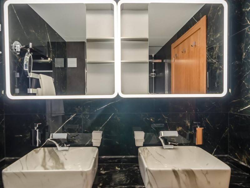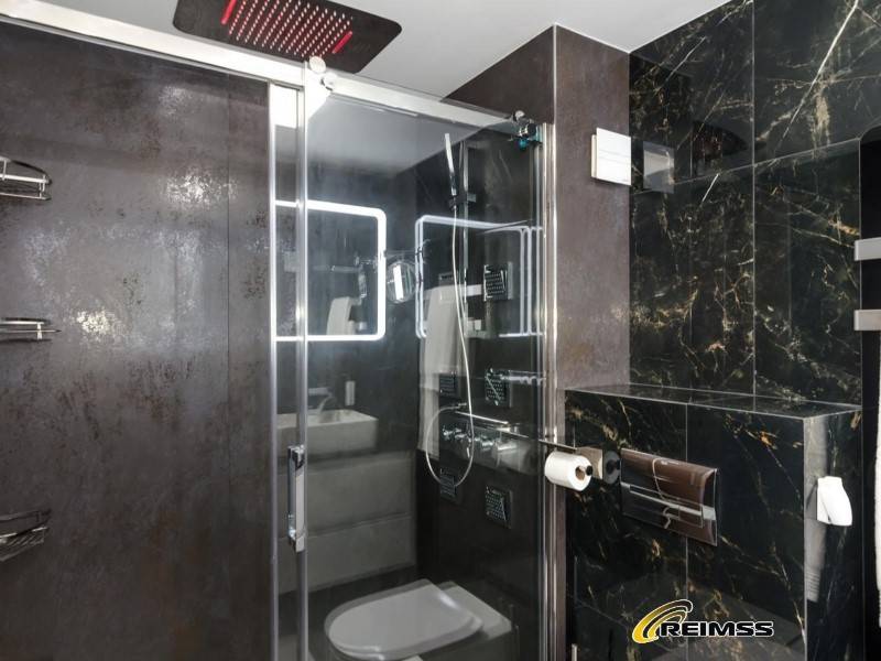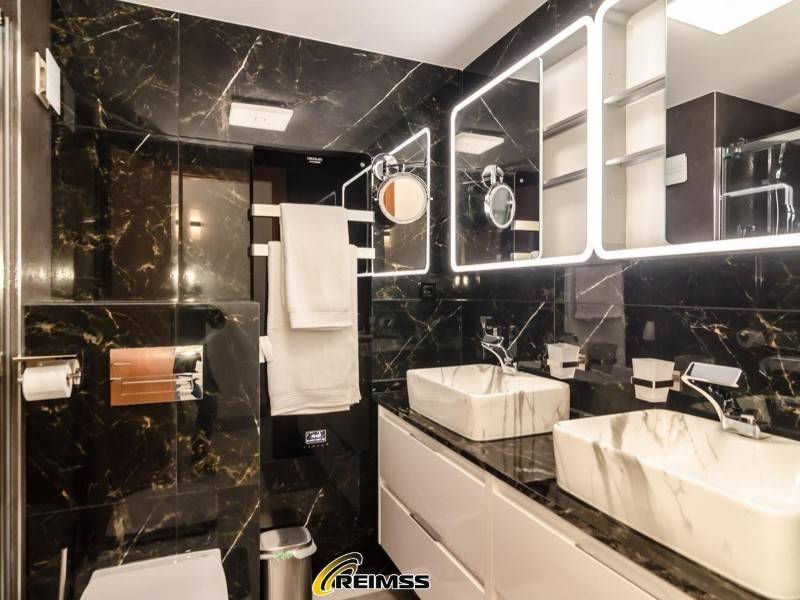 Its details include: hot/cold air conditioning, parquet and stoneware floors, tilt-and-turn windows, modern lighting with touch switches, day/night blinds and TV socket in all rooms.