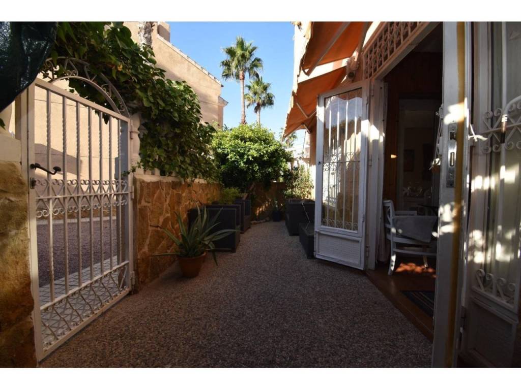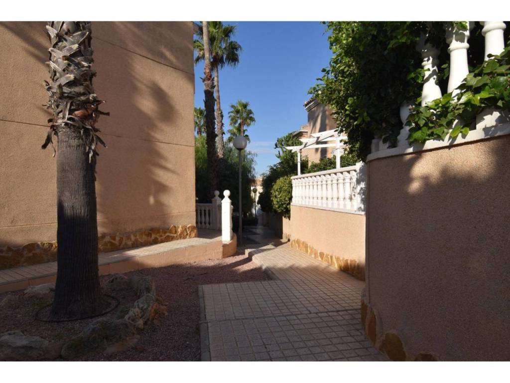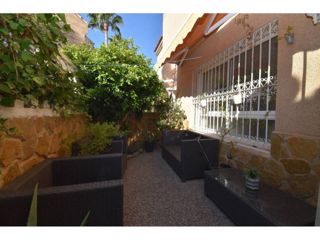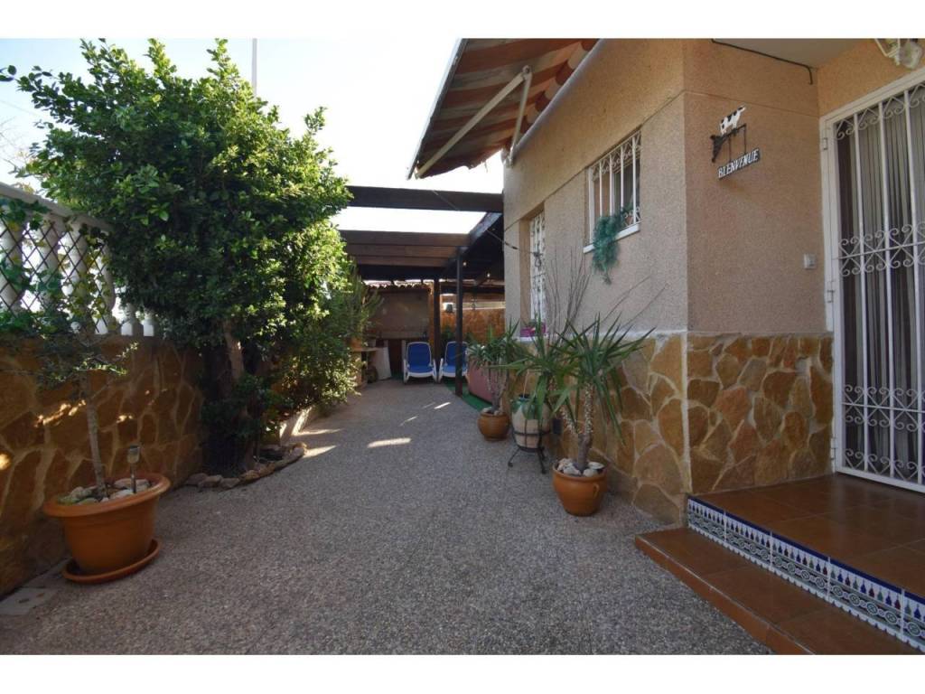 La vivienda se encuentra en una urbanización privada con piscina comunitaria, plaza de aparcamiento en garaje cubierto, y zonas de paso para la comunidad. El bungalow en esquina cuenta con una amplia terraza completamente equipada para ser disfrutada ya que cuenta con barbacoa de obra, zona comedero, chile out para relajarse y con techo cubierto para proteger del sol o la lluvia; es ideal para disfrutar de reuniones familiares o con amigos, o simplemente relajarse en su vivienda y tener un espacio exterior para aprovechar el buen clima que caracteriza la zona.