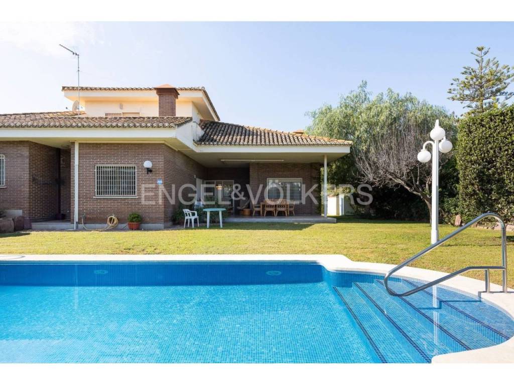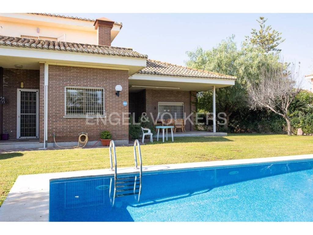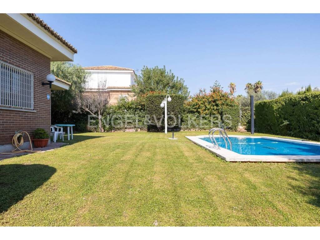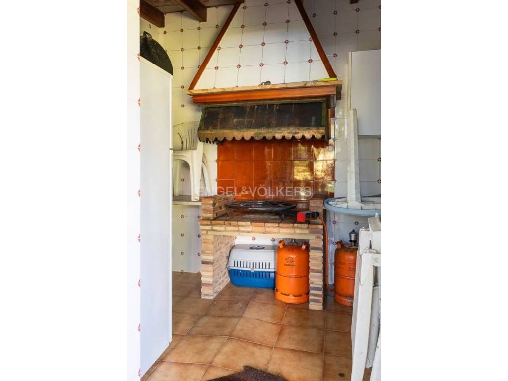 El exterior de la propiedad es igualmente atractivo. Un jardín consolidado rodea la vivienda, ofreciendo privacidad y tranquilidad. La parcela cuenta con una gran piscina, un porche cubierto perfecto para comidas al aire libre y un paellero tradicional.