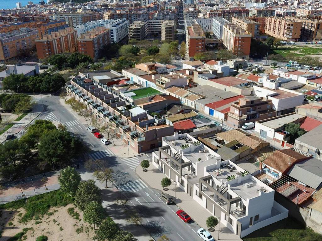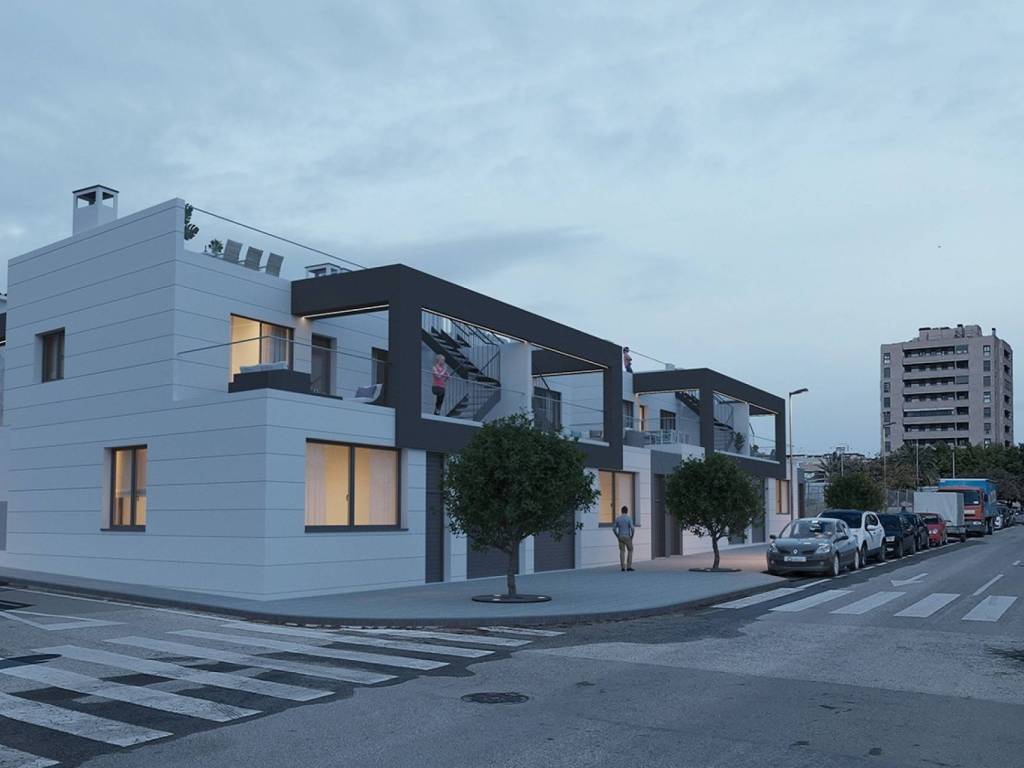These townhouse with 4 bedrooms, 3 bathrooms, garden, have a fantastic solarium. All the properties in the development enjoy the best qualities. Among other elements, they have high levels of comfort and energy efficiency adapted to the needs of the XXI century. This residential development is located in the capital of Alicante, in the privileged residential area between Gran Vía and Bulevar del Plá. A very well located modern area with all kinds of services. The area also has restaurants and cafes, as well as fashion stores, schools, health centers. At 5 minutes from the Gran Via shopping center and sports centers. The beach is only ten minutes away by car, and the center of Alicante is less than 10 minutes away. There are several bus stops and the Tram stop, from where you can reach any point of the city. Alicante International Airport is only 20 minutes away by car. Contact us for more information, or join one of our no-obligation tours to visit this wonderful project.