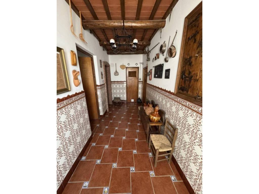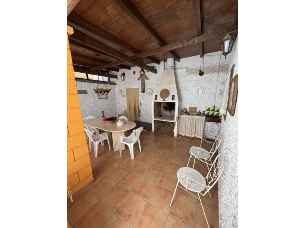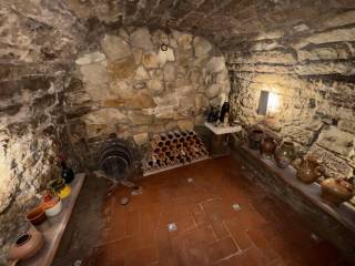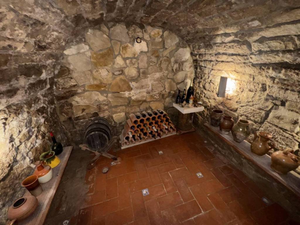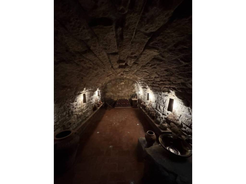 Ground floor: One-car garage, one double bedroom, a toilet, and a 50 m2 covered patio with a wooden roof and barbecue, perfect for gatherings and relaxing. Beneath the patio is a traditional wine cellar, typical of old farmhouses.