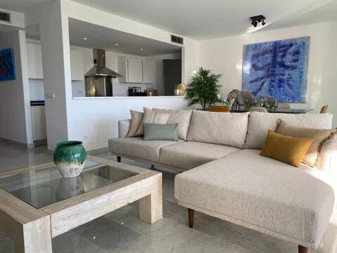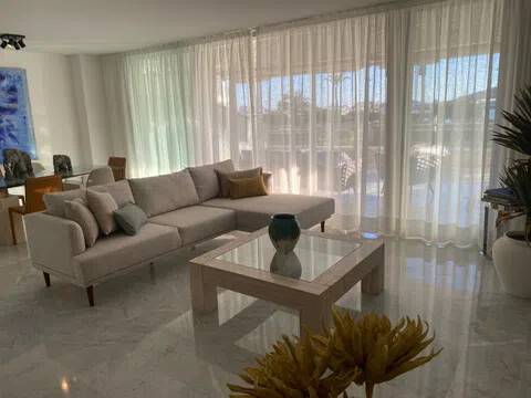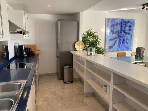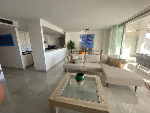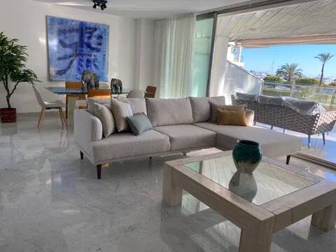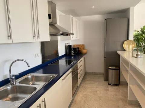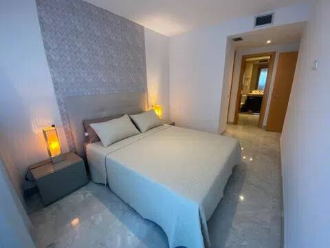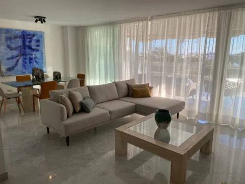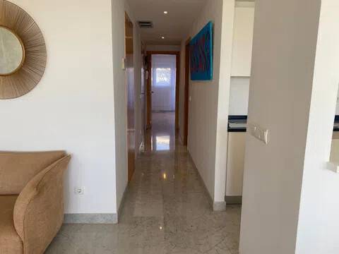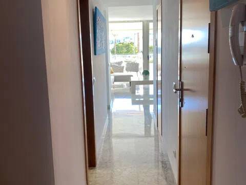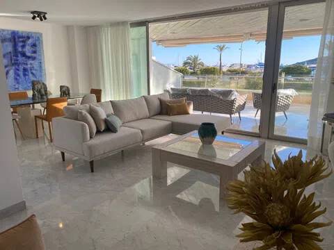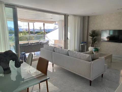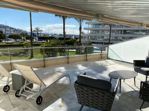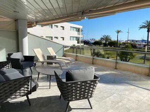 Oportunidad! Este lujoso apartamento se encuentra en primera línea del paseo marítimo de Ibiza. Al entrar nos sorprenden las impresionantes vistas a Dalt Vila como si de una postal se tratase. Por su ubicación en el edifico de formas redondeadas, disfruta de mucha privacidad. Se distribuye en un espacioso salón-comedor con moderna cocina abierta y una fabulosa terraza cubierta que invita a relajarse y disfrutar de las vistas a la bonita piscina comunitaria, al puerto deportivo y a la catedral de Ibiza. Por su ubicación en el edifico de formas redondeadas, disfruta de mucha privacidad. En la parte noble del inmueble hay 2 dormitorios y 2 baños (uno en suite) y una terraza orientada al norte muy agradecida en los días de fuerte calor. El apartamento está orientado al sur, tiene suelos de mármol, plaza de parking incluida en precio, sistema alarma, ascensor, exclusiva y discreta comunidad con portero 24/7. Tener un apartamento en primera línea del paseo marítimo de Ibiza en una comunidad eficiente es muy agradecido y muy cómodo para los que tienen una embarcación en el puerto deportivo, para los que quieren prescindir del coche sin renunciar a la noche de Ibiza en los locales de moda a tan solo un paseo.