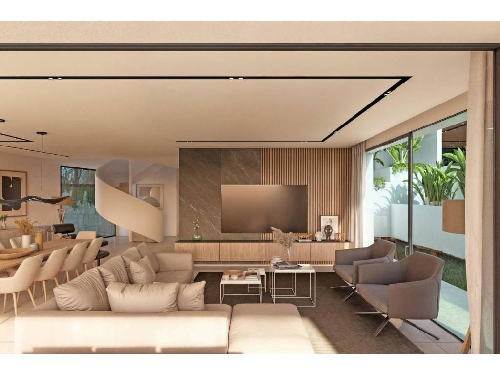 The exterior has been designed as a private retreat, combining landscaped gardens, both covered and open terraces, a private swimming pool with outdoor shower, and a barbecue area perfect for entertaining. The southeast orientation guarantees plenty of natural light throughout the day, making every corner of the villa feel bright and welcoming.