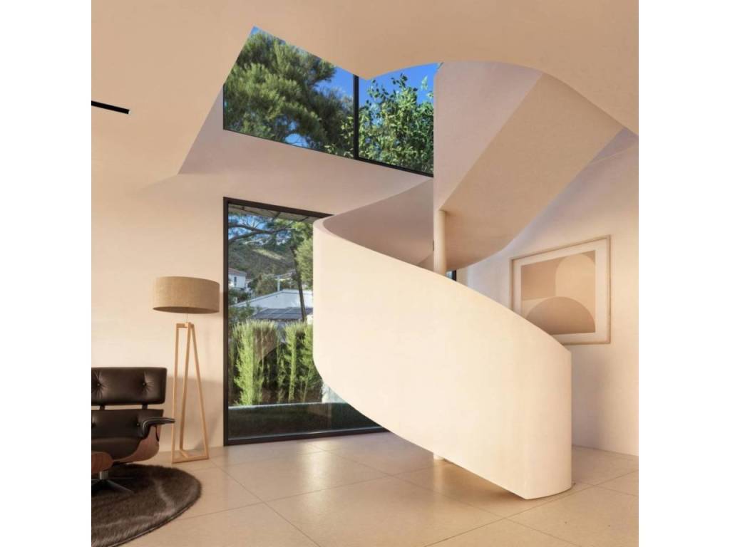 This luxury villa in Moraira is perfectly situated just 1.8 km from the beach and the vibrant town center, offering an ideal balance of privacy and convenience. Moraira, a charming coastal town on the Costa Blanca, is known for its fine sandy beaches, crystal-clear waters, and Mediterranean lifestyle. The town boasts a wide selection of restaurants, bars, supermarkets, and a lively marina. Alicante International Airport is approximately 90 km (1h15) away via the A7 motorway, while Valencia Airport lies at a similar distance to the north, making access simple and convenient.