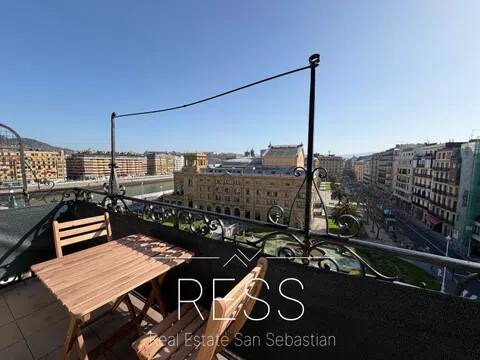 Real Estate San Sebastián (RESS) presenta en exclusiva una vivienda única en pleno corazón de la ciudad. En la prestigiosa calle Reina Regente, a un paso del Boulevard y con vistas despejadas al río Urumea, se encuentra este espectacular piso alto, exterior y extraordinariamente luminoso. Una propiedad de 82 m² útiles diseñada para quienes buscan calidad de vida, comodidad y una ubicación inmejorable. Distribución perfecta para vivir con confort: • Amplio salón-comedor con grandes ventanales que llenan el espacio de luz natural y acceso directo a una terraza encantadora con vistas al río. • Cocina moderna y completamente equipada, integrada en la zona de día para disfrutar de espacios amplios y funcionales. • Dormitorio principal tipo suite, con armario empotrado y baño privado. • Segundo dormitorio con armario empotrado, ideal como habitación, despacho o espacio polivalente. • Dos baños completos, uno de ellos en suite. Características destacadas: • Vivienda alta, exterior y luminosa. • Terraza con vistas privilegiadas al Urumea. • Portal señorial con ascensor. • Reforma y diseño actual. Ubicación inmejorable: A un paso de todo: la playa de La Concha, la Zurriola, el Boulevard, la Parte Vieja, comercios, transporte y servicios. Una zona vibrante, elegante y muy demandada, perfecta tanto para residencia habitual como para segunda vivienda. Una oportunidad excepcional para vivir con estilo, comodidad y las mejores vistas. Contáctanos para más información o una visita.