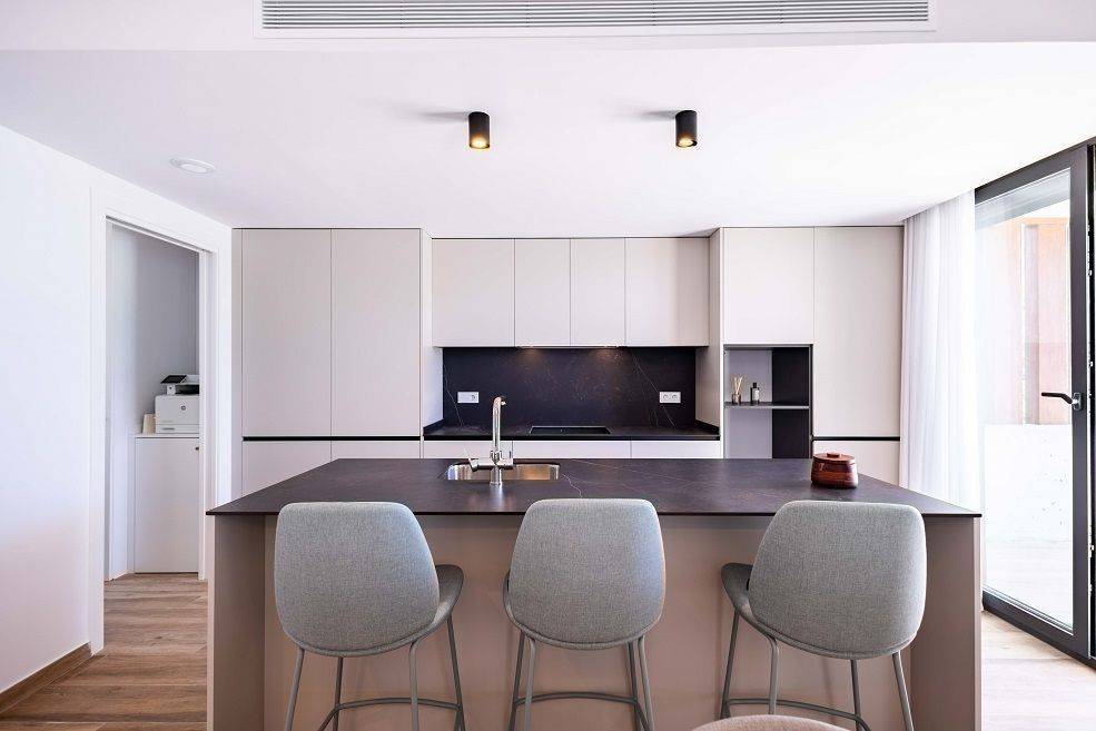 They include hot and cold air conditioning, high-quality finishes, and private on-plot parking. The residential complex is fully fenced, with automated vehicle access and a video intercom system.