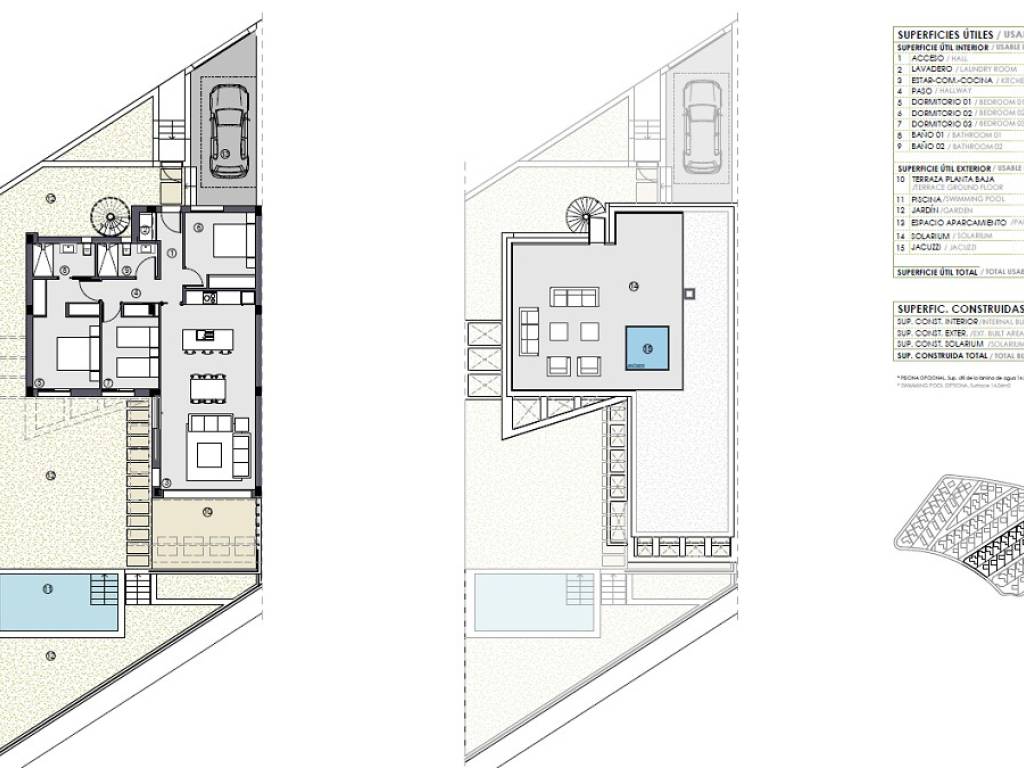Exclusive development of single-storey detached villas, each with its own private plot, designed to offer comfort and functionality. The homes feature 3 bedrooms, 2 bathrooms, and a bright open-plan living-dining area with a fully equipped American-style kitchen with top-brand appliances.