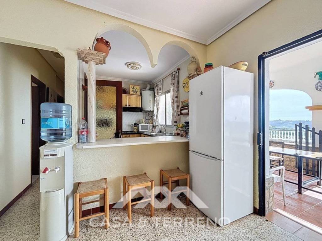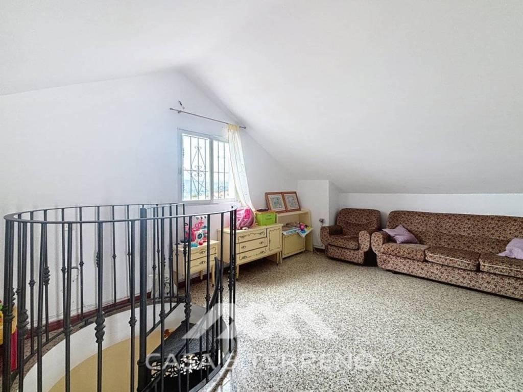 The main house features 3 bedrooms on the main floor, a full bathroom, and a guest toilet. The kitchen is separate yet open to the living room, providing comfort and a practical layout. On the upper floor, there is a large open space, perfect for creating two additional bedrooms or a spacious master suite, with direct access to a very large terrace boasting impressive sea and mountain views.