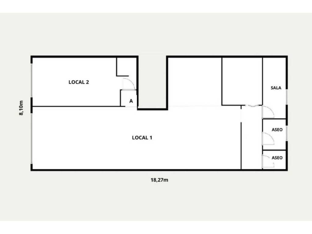 Se trata de dos locales completamente diáfanos, que originalmente estaban unidos. Cabría la posibilidad de unirlos y crear un espacio totalmente abierto, puesto que están separados entre ambos por un tabique.