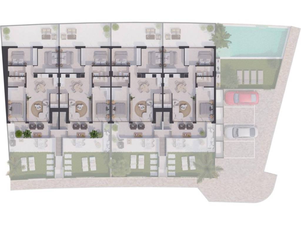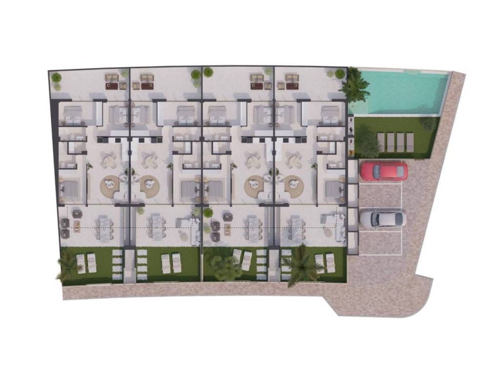 Discover this new residential complex of 8 modern bungalows in San Pedro del Pinatar, one of the most desirable locations on the Costa Cálida. These contemporary homes offer 3 bedrooms, 2 bathrooms, an open-plan kitchen with a spacious living area, built-in wardrobes, and a private terrace.