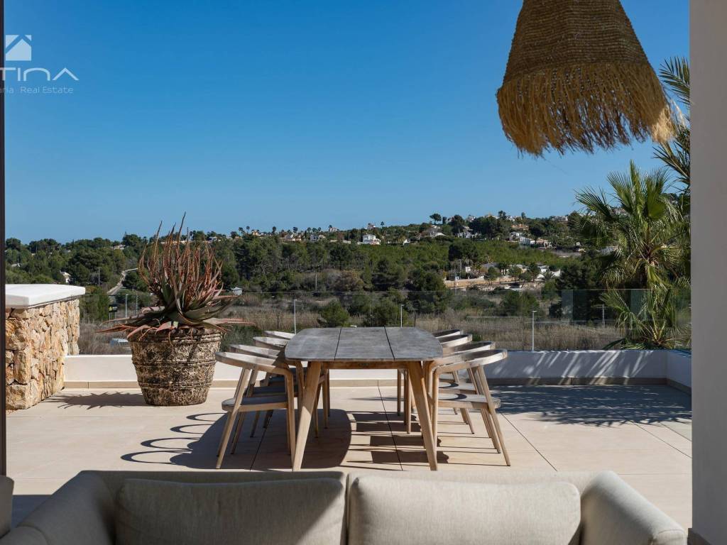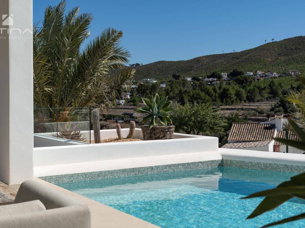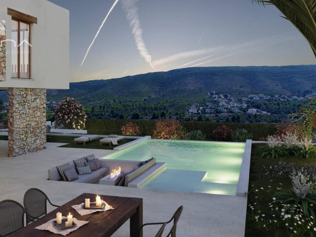 Luxury Ibizan villa in the sunny urbanisation of Las Laderas, Javea. It offers a unique opportunity to live in an exceptional home with spectacular views of the green mountain and the Granadella natural park. Just a short walk away, the future international school XIC Javea, due to open in late 2024, promises to add value to this already privileged location.The recently obtained building permission marks the beginning of a project where you can bring your dream home to life. This Ibizan-style villa, distributed over two levels, includes on the ground floor a spacious light-filled living/dining room opening onto breathtaking landscapes, a modern and functional open-plan kitchen, a guest WC and a machine room. The living area consists of four double bedrooms and three full bathrooms, including a master suite with large windows to admire the breathtaking view.The outdoor spaces are equally impressive, offering spacious terraces, both sunny and shaded, an infinity pool with outdoor shower and gardens designed to blend into the surrounding landscape. The villa's design skilfully combines traditional Mediterranean craftsmanship and modernity, ensuring unparalleled comfort with state-of-the-art amenities such as underfloor heating, ducted air conditioning in every room, aluminium double glazed windows, alarm system, intercom, external blinds in the bedrooms, high ceilings and fitted wardrobes.The villa enjoys an exceptional location: 6 minutes drive from the fine sandy beach of Arenal and close to several restaurants. Las Laderas, a new residential area, offers all modern conveniences such as sewage systems, buried cables and new constructions, all with stunning views of the natural park of La Granadella, perfect for walks with extraordinary sea views.The construction can be customised to the buyers taste and lifestyle.