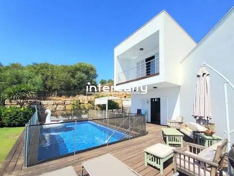 MARAVILLOSA VILLA DE ESTILO CONTEMPORANEO CON JARDIN, PISCINA PRIVADA Y PRECIOSAS VISTAS AL MAR, GIBRALTAR Y AFRICA. Con una privilegiada ubicación en una lujosa zona residencial en Torreguadiaro, A TAN SOLO 5 MIN ANDANDO DE LA PLAYA y del paseo marítimo, que le llevara hasta el famoso Puerto de Sotogrande, donde encontrara una gran selección de bares, restaurantes y zonas de ocio. Prestigiosos campos de Polo como el de Ayala o de Golf como Valderrama a 4 km, el aeropuerto de Gibraltar a 10 km y Marbella a 30km. Esta bonita propiedad, esta distribuida en tres plantas, construida con materiales de primerísima calidad y excelentes acabados. Disfruta de gran luminosidad gracias a sus grandes ventanales en toda la vivienda y su ORIENTACIÓN SUR. En la primera planta encontramos, el amplio salón- comedor con cocina integrada, todo en un estilo diáfano, muy cómodo y despejado. En la planta superior, las habitaciones, de las cuales, el magnifico dormitorio principal con un baño jacuzzi de mármol con tono marfil. Todas las habitaciones están equipadas con roperos a medida de madera blanca lacada, una sensación minimalista y ordenada que consigue todo el diseño de la Villa. Garaje para 2 plazas de coches/ aire acondicionado y bomba de calor, en toda la casa, además para el abastecimiento de agua la vivienda dispone de aljibe Toda la solería del interior de la vivienda en planta baja y primera planta está realizada en parque de madera IPE. En el exterior encontramos una piscina rodeada de una tarima flotante de IPE natural y césped. Cuenta con un pequeño apartamento adicional.Es realmente una vivienda de sueño para disfrutarla, con un alto potencial de alquiler vacacional o larga temporada. Recomendamos su visita.