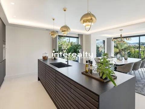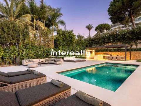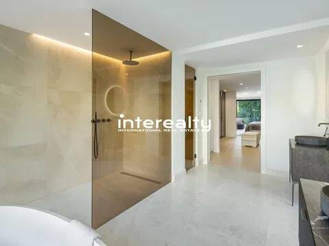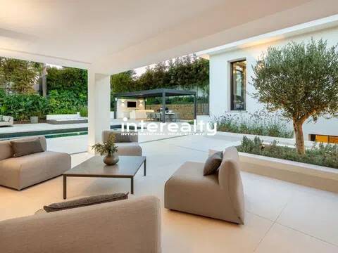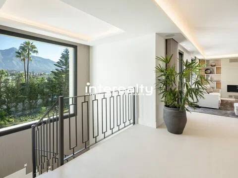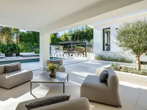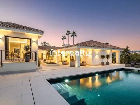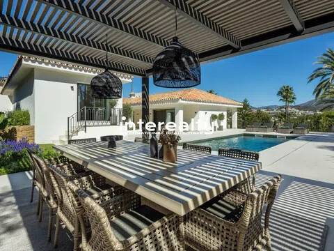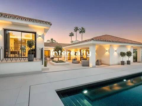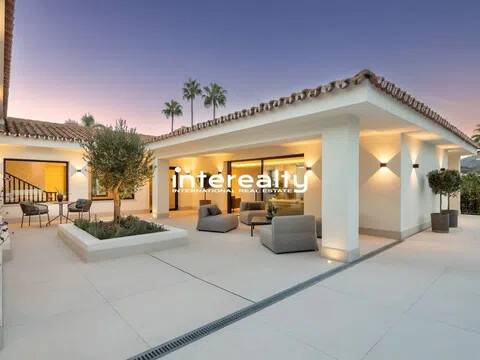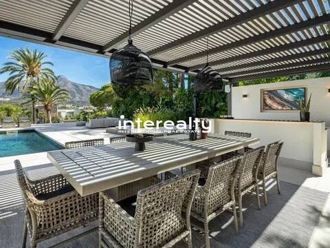 VILLA REFORMADA A MEDIDA EN EL VALLE DEL GOLF CON EXQUISITO DETALLE Y EXCELENTES CALIDADES. En la ubicación privilegiada del Valle del Golf de Marbella presentamos esta extraordinaria casa familiar, actualmente siendo reformada y actualizada para llevarla a la cima del lujo. Esta auténtica villa andaluza en Las Brisas se asienta en una hermosa y elevada parcela de alrededor de 1600 m2 y se beneficia de una gran privacidad y unas vistas impresionantes a la icónica montaña de La Concha de Marbella. Con el patio original de esta propiedad aún en su lugar, la nueva reforma ha maximizado todas las características y niveles que se encuentran en su diseño original, creando una casa maravillosamente cómoda que fluye a la perfección dentro de sus 3 niveles y varias alas. Un generoso camino de entrada conduce desde la carretera exterior y permite que los coches accedan al garaje seguro con espacio para 2 coches. Desde aquí es evidente la calidad y consideración que se ha puesto en esta fabulosa casa de lujo en Marbella, con los pisos fluyendo impecablemente desde aquí hacia la villa y hacia las terrazas exteriores mediante el uso de exquisitas baldosas de cerámica italiana de 120 cm x 120 cm. Se accede a la sala de estar principal de la villa a través de una impresionante y alta puerta de entrada que conduce desde los escalones de acceso a la casa y ofrece vistas inmediatas y muy agradables al patio, a la piscina y al chiringuito más allá, con olivos emblemáticos colocados aquí dentro del Cortijo original. área. Las ventanas del piso al techo y las puertas del patio permiten que la luminiscencia se infiltre en el hermoso pasillo, la escalera y la hermosa sala de estar, donde la carpintería italiana presenta estanterías y gabinetes del piso al techo, con una hermosa decoración para disfrutar mientras se entretiene y se relaja en este súper espacio. La cocina está hecha a mano para enfatizar el espacio y la oportunidad que presenta esta villa. Con las áreas de preparación de alimentos en la entrada con vista al gran comedor, este es el diseño perfecto debido a la inmensa ventana que enmarca la vista a las Brisas Golf y magníficamente a la Concha. Adyacente a esta área hay una escalera interna que se ha incorporado inteligentemente para que el nivel inferior esté realmente integrado con el resto de la casa. Un elemento de jardín interior ubicado en esta escalera brinda una sensación real de naturaleza que anima al visitante a bajar las escaleras, donde encontramos una hermosa sala de estar que se puede utilizar como otro salón o oficina. Desde aquí, una puerta conduce a la sala de juegos, con bar, mesa de billar, una gran bodega y una enorme pantalla de televisión panorámica. Hay 5 dormitorios dentro de esta casa y cada uno tiene su propio baño privado. La suite principal es especialmente impresionante. Aquí encontramos un suelo revestido con tarima de madera de roble que aporta un gran confort a los pies y conduce a través del dormitorio al amplio vestidor y al baño. Además de los lavabos dobles, el inodoro y la bañera, este baño cuenta con una excepcional adición de una ducha al aire libre, un verdadero placer para quienes disfrutan del estilo de vida al aire libre. El nivel inferior también cuenta con una instalación de Spa con sauna, estudio de Yoga y gimnasio. La increíble área de la piscina ha sido optimizada como un espacio que se puede utilizar durante todo el año, con hermosos acabados en mosaico y rodeada de plantas con flores tropicales. Aquí encontramos una cocina exterior totalmente equipada con chiringuito y gran mesa de comedor. Con un gran jacuzzi ubicado en el área de la terraza, el detalle y la reflexión que se han puesto en cómo esta área puede brindar lujo y disfrute son claros. Esta villa de Marbella está integrada en todas partes con calefacción por suelo radiante alimentada por un sistema de aerotermia Daikin, a excepción de los baños que cuentan con un s.
