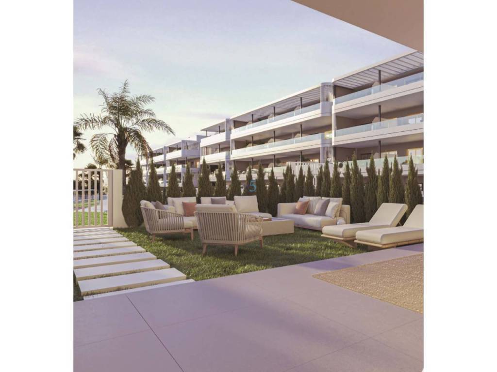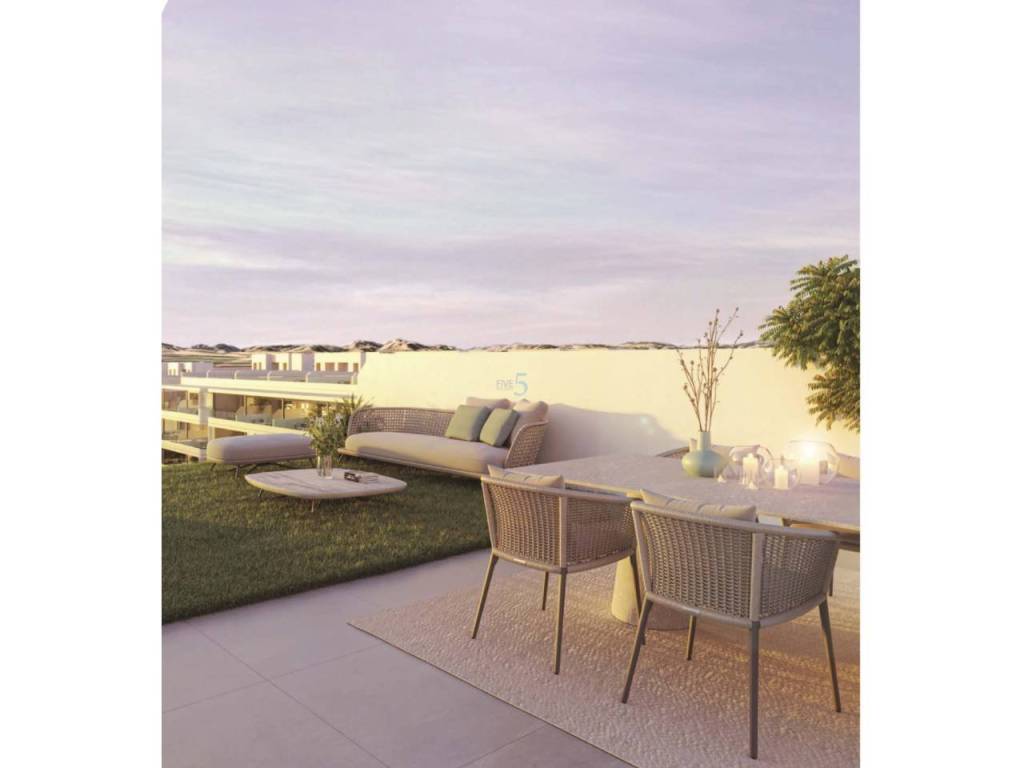 Los exteriores de estas viviendas están pensados para maximizar el disfrute del clima mediterráneo. Las propiedades cuentan con terrazas amplias, ideales para relajarse al aire libre o disfrutar de una comida con vistas al mar. Las plantas bajas ofrecen la ventaja adicional de un jardín privado, perfecto para quienes desean un espacio verde propio. Además, los áticos disponen de solárium, un lugar exclusivo para tomar el sol en total privacidad. La cercanía al mar, a solo 4 km, asegura que las actividades al aire libre sean una parte integral del estilo de vida aquí.