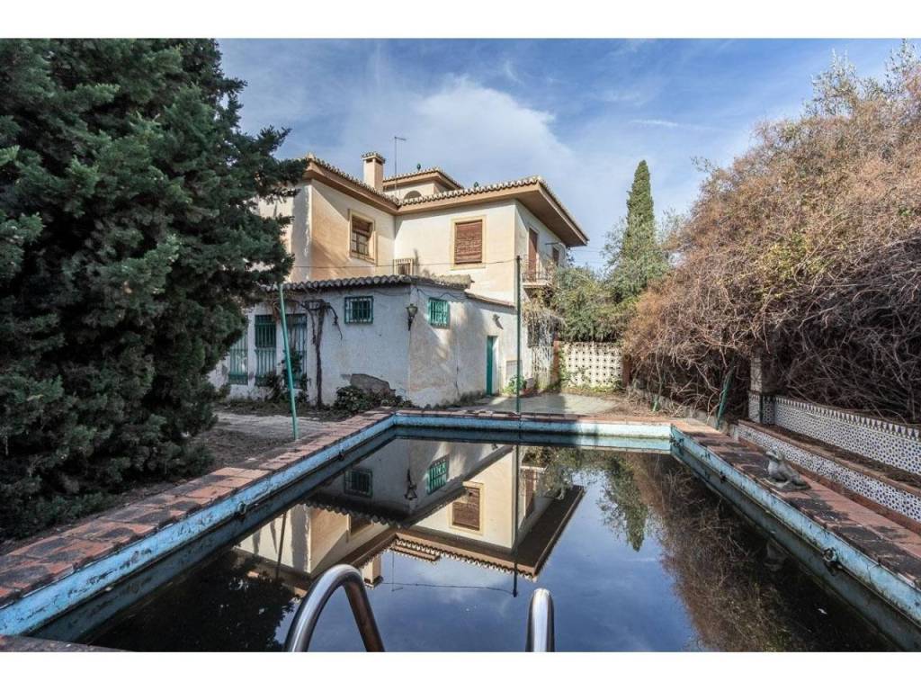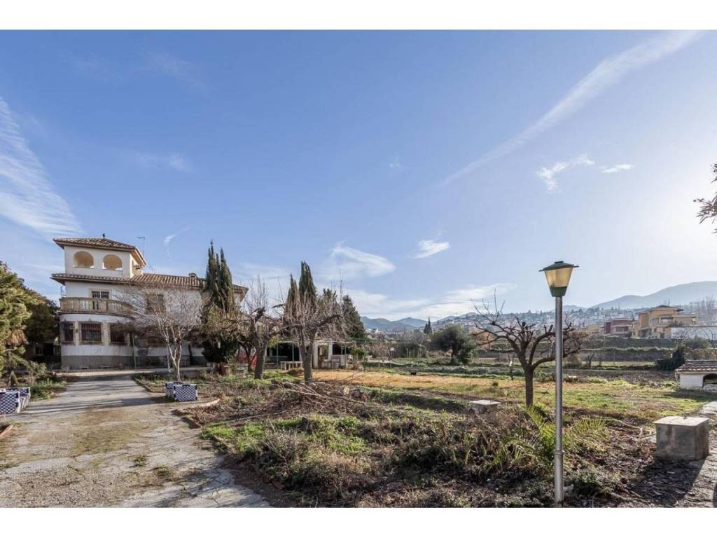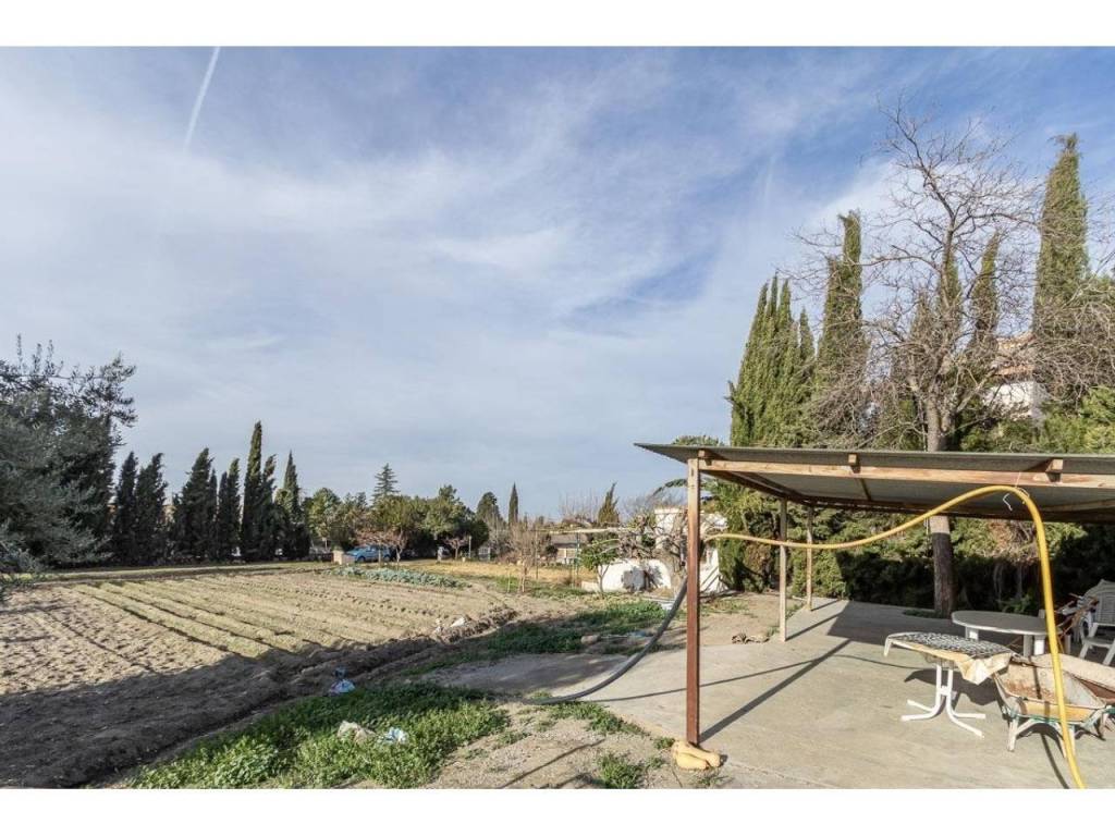 En los aledaños de la casa encontramos una zona de aproximadamente 800m2 con partes ajardinadas, piscina, varias casetas de almacenaje para herramientas, depuradora etc. También cuenta con aljibe propio, huerto y una gran cochera con capacidad para varios coches.