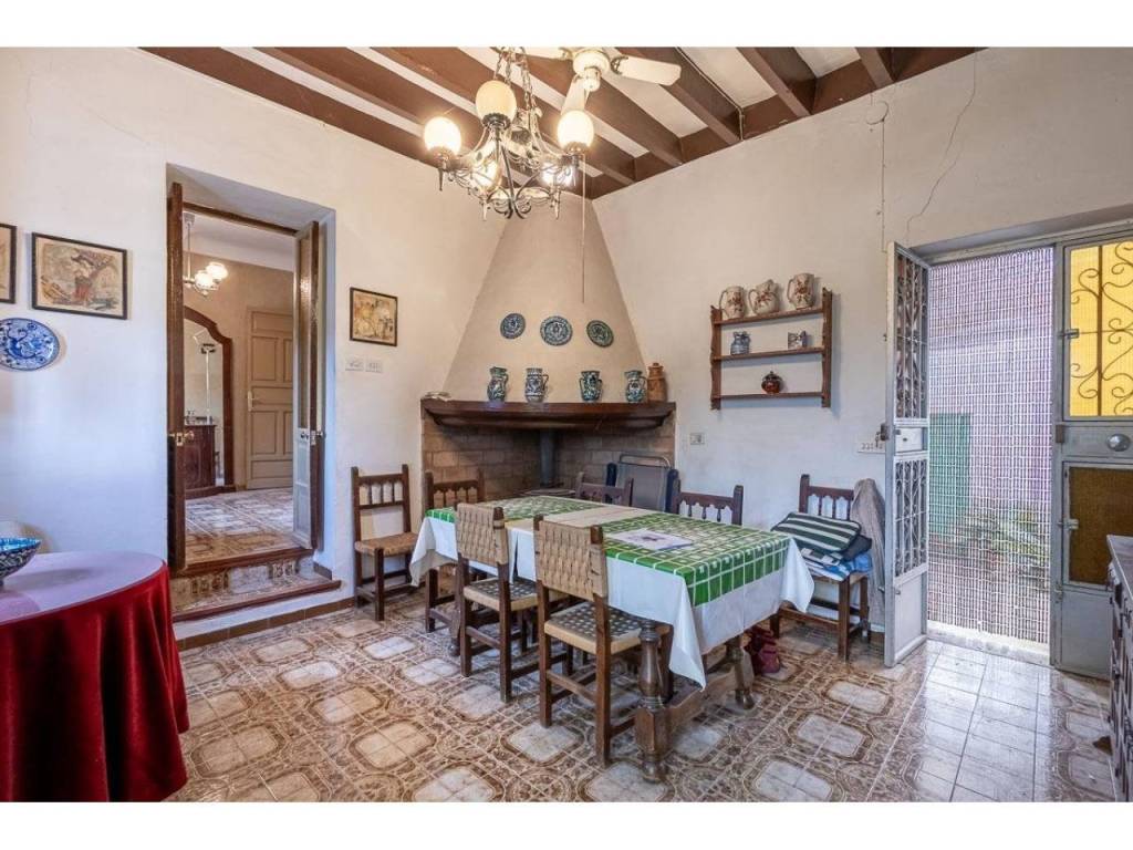 La casa se distribuye principalmente en dos plantas, en la parte baja tiene una amplia cocina, patio con cuarto de baño, comedor, gran salón con chimenea, una sala bar y un dormitorio.
