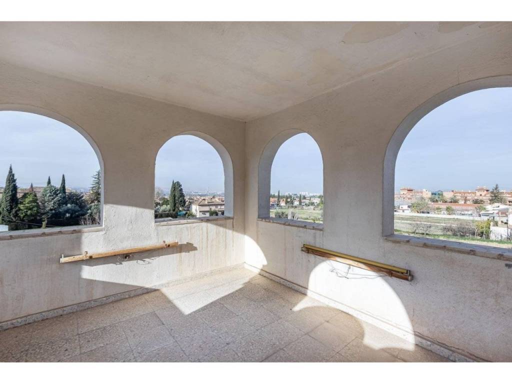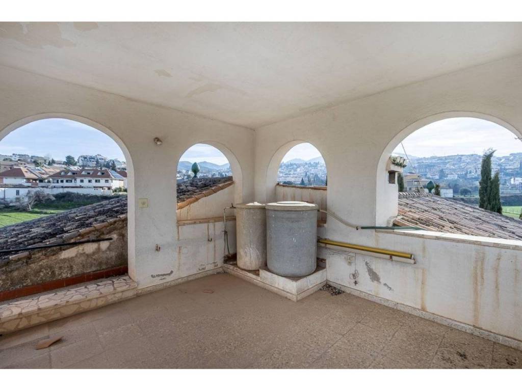 La planta alta cuenta con cinco amplios dormitorios, algunos con terraza o balcón, y un cuarto de baño con acceso a una gran terraza que a su vez permite subir a un torreón donde disfrutar de unas maravillosas vistas panorámicas y despejadas.
