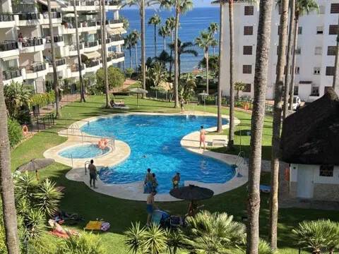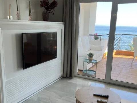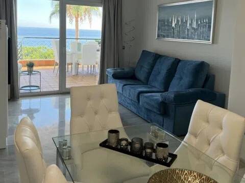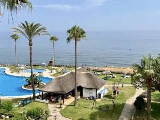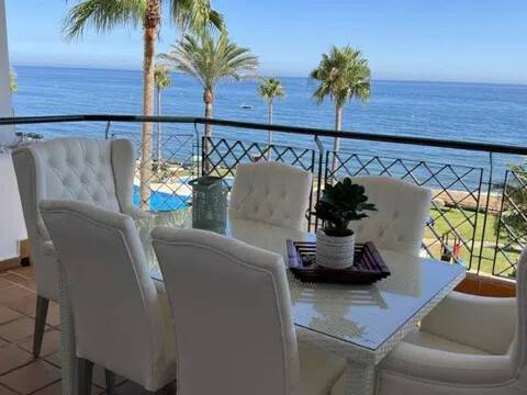 Espectacular y lujoso piso en primera línea de mar. ¡Descubre tu nuevo hogar frente al mar en Calahonda! Este excelente apartamento de ofrece unas vistas panorámicas que te dejarán sin aliento. Imagina disfrutar de impresionantes atardeceres desde tu terraza cubierta orientada al sur, donde la luz natural inunda cada rincón. El amplio salón-comedor se conecta directamente con la terraza, creando un espacio perfecto para relajarte o recibir a tus amigos. La cocina es extensa y cuenta con un lavadero independiente, ideal para mantener el orden. Con dos dormitorios, el principal es en suite, ofreciendo privacidad y comodidad. Además, el mobiliario está incluido, lo que facilita la mudanza. Este apartamento también dispone de aire acondicionado renovado recientemente y armarios empotrados, garantizando un hogar funcional y acogedor. Ubicado a pie de la playa y cerca de otras playas como La Cala de Mijas y Cabopino, este enclave privilegiado te permitirá disfrutar del sol y el mar en cualquier momento. La cercanía a restaurantes, supermercados y otros servicios hace que la vida diaria sea muy cómoda. Con una plaza de aparcamiento incluida y acceso a piscina y jardín, ¡no dejes pasar esta oportunidad única! La comunidad es espectacular un verdadero oasis junto al mar. Ven a visitar tu futuro hogar y enamórate de la vida frente al mar.