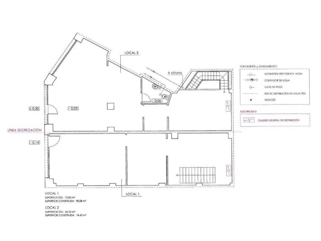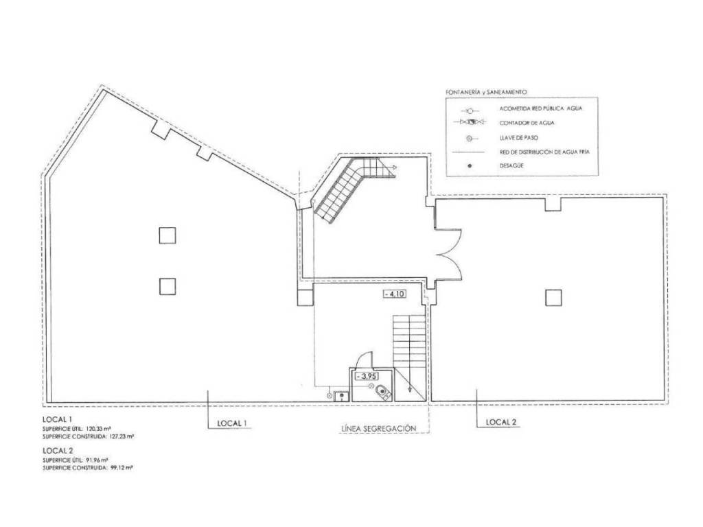 El local original cuenta con un proyecto de segregación que da como resultado dos locales comerciales: LOCAL 1 de 217 metros cuadrados, con un escaparate a Sabino Arana, 90 metros en planta baja y 127 metros en sótano. LOCAL 2 de 174 metros cuadrados, con dos escaparates en chaflán a Sabino Arana y Alameda Urquijo, 74 metros en planta baja y 100 metros en sótano.