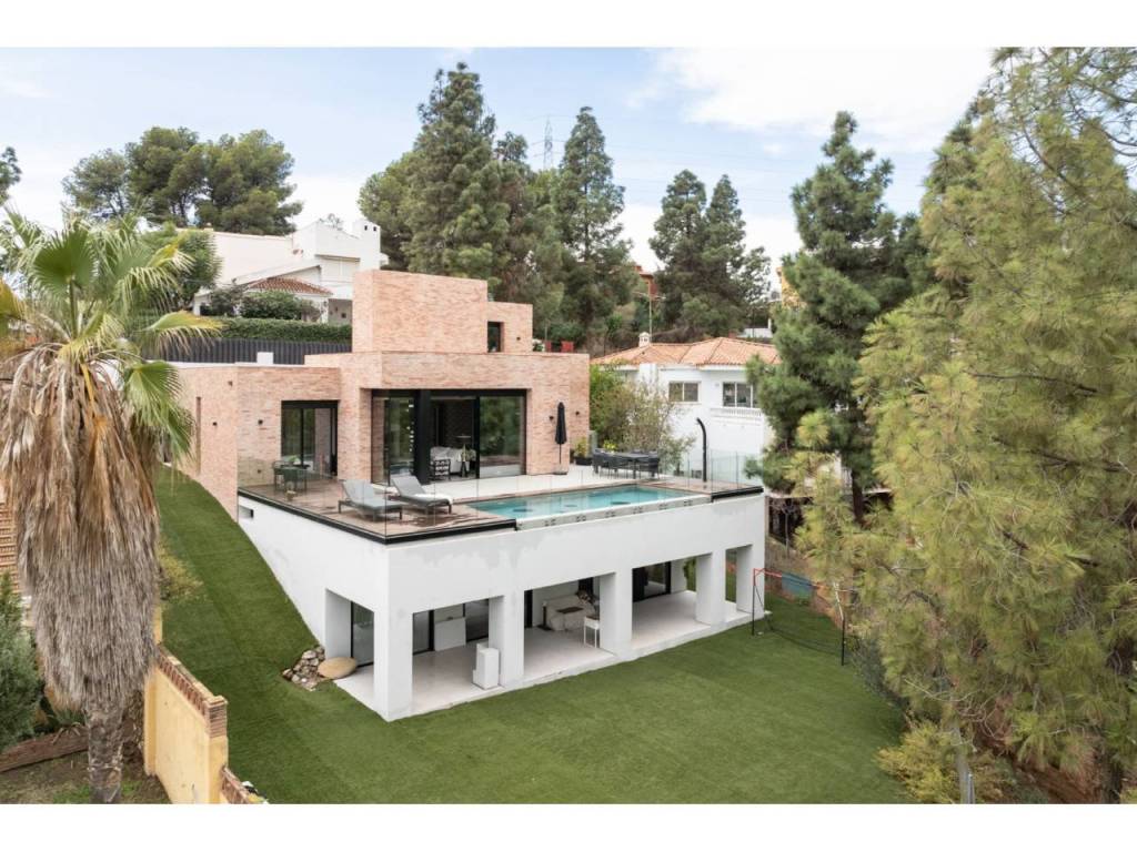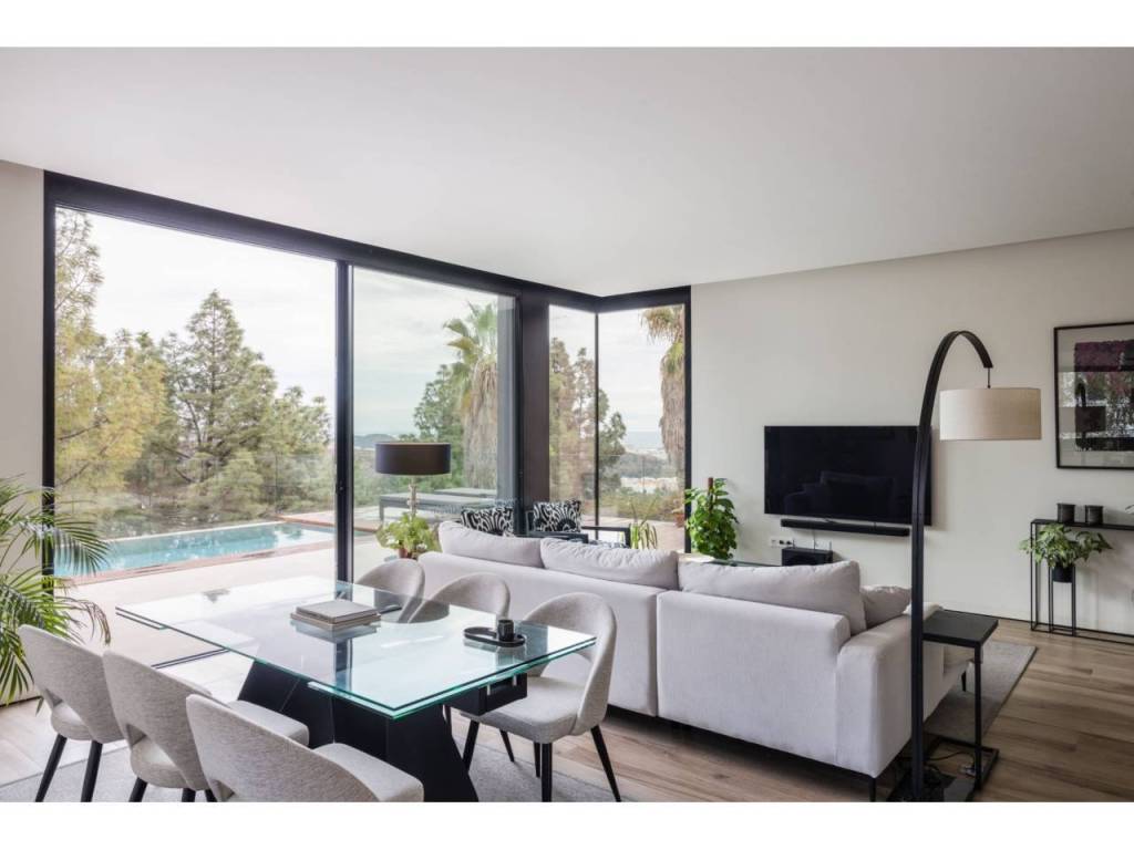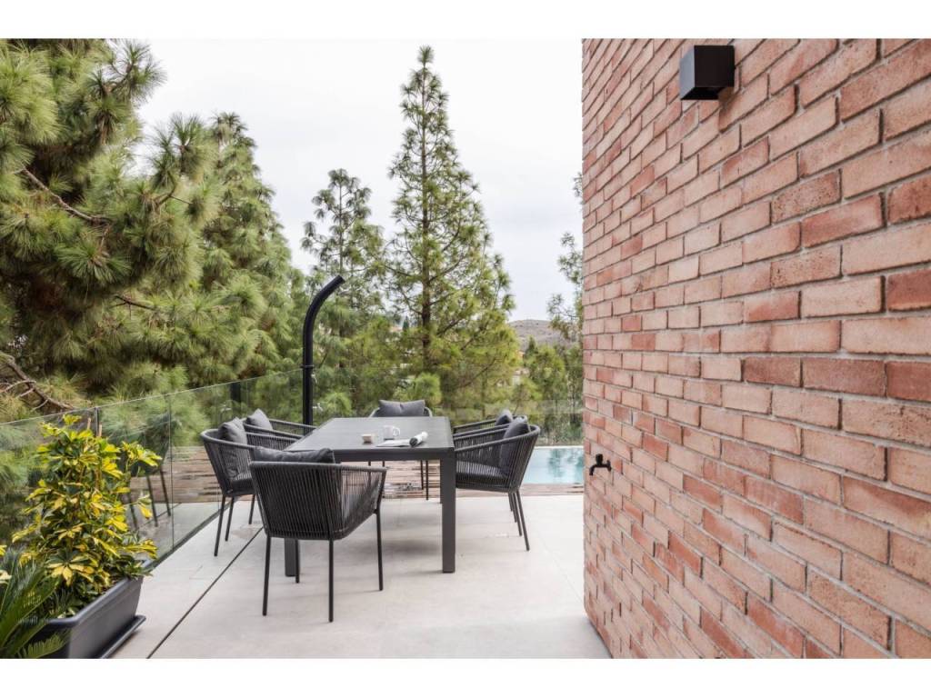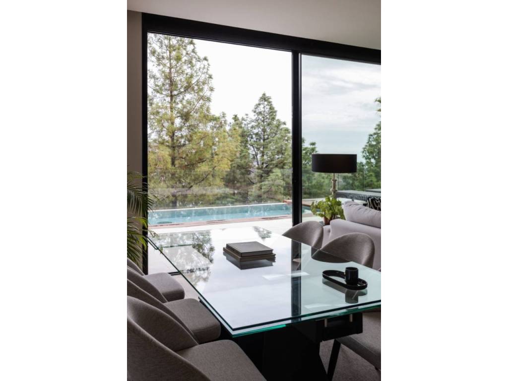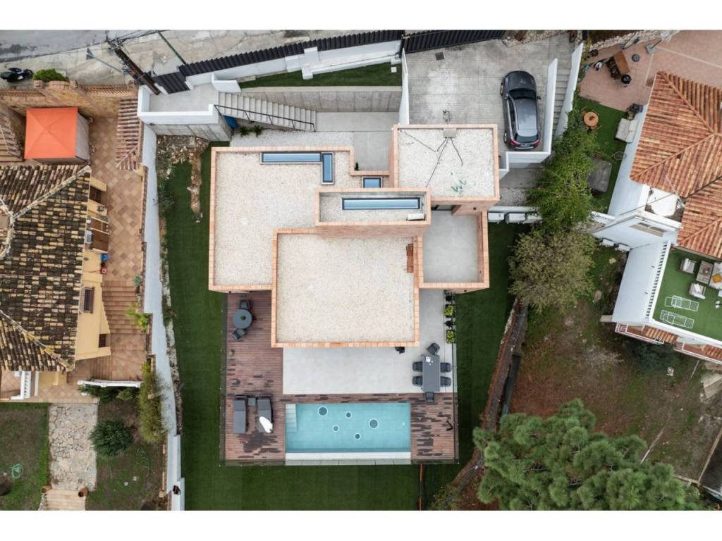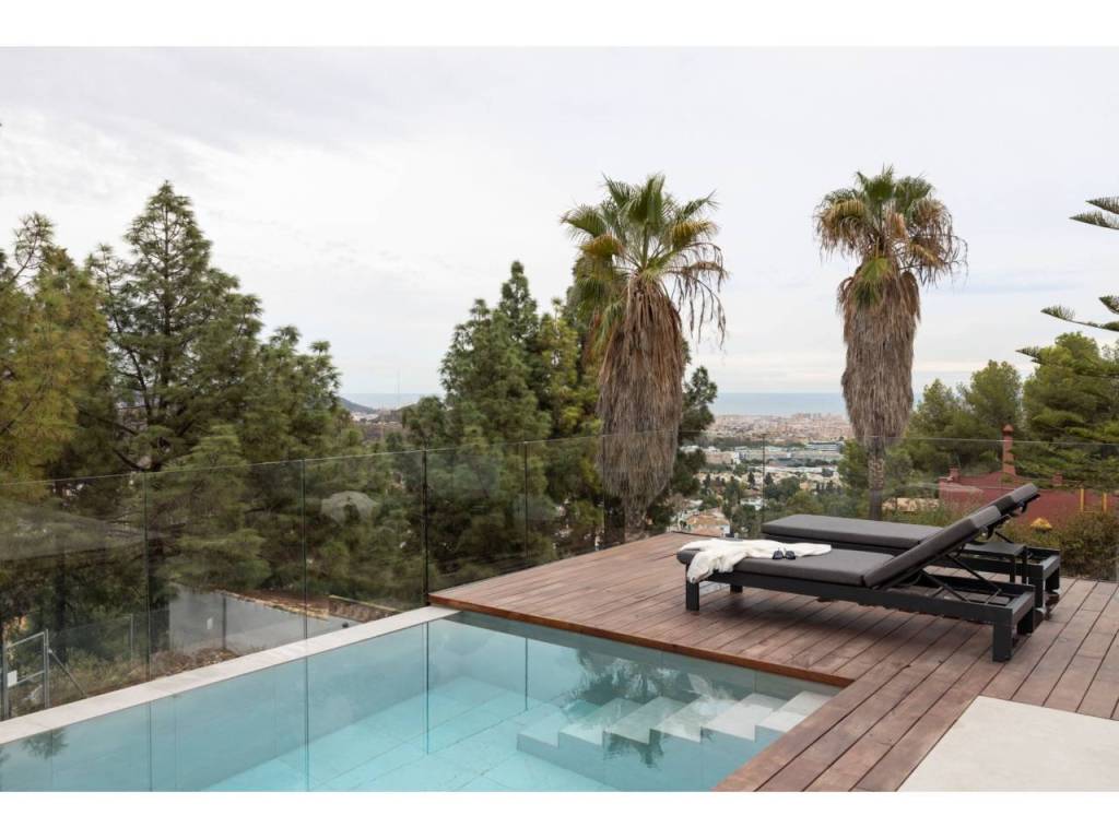 El Atabal sits at an interesting crossroads. Teatinos to one side, the Parque Tecnológico to the other — one of Málaga's most quietly dynamic neighbourhoods, and still largely under the radar. International schools nearby, some of the best in the city. The airport, the centre, the coast — all within reach, none of it felt from inside the house. The villa is newly built and designed around the way families actually live. Three floors, four en-suite bedrooms, sea and mountain views from every level. The main floor runs kitchen into dining into living, opening onto the terrace and pool through full-width glazing. The lower floor is where the house really breathes — three bedrooms, each opening directly onto the covered terrace and out into the garden. Space for children to run, spill outside, come back in. A floor that works as a private wing, a kids' world, or both. The upper entrance level adds a home office and an open terrace with long views. Light throughout. Low-maintenance garden. Private pool. The kind of house that doesn't ask much of you. A short drive from everything. Quiet enough to forget it.