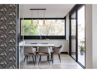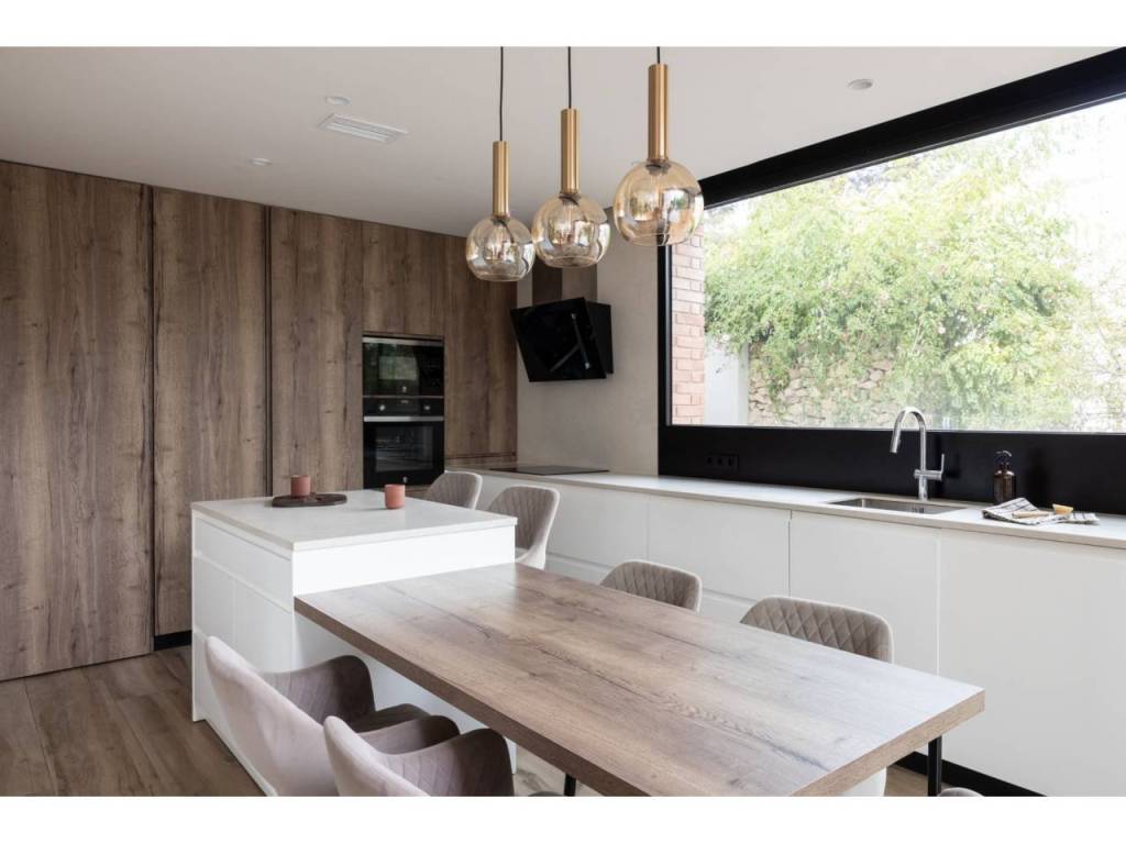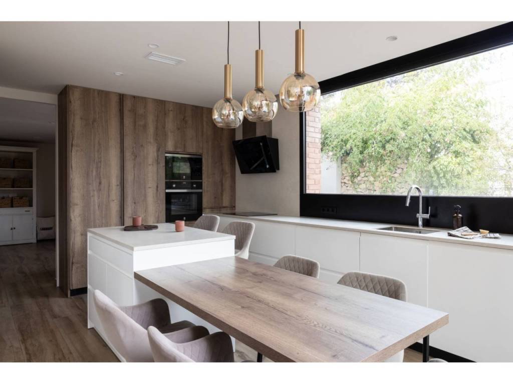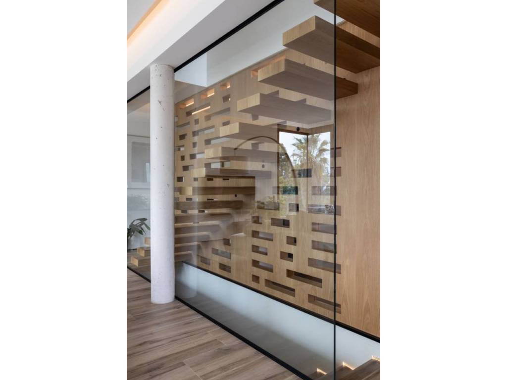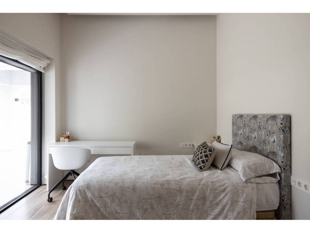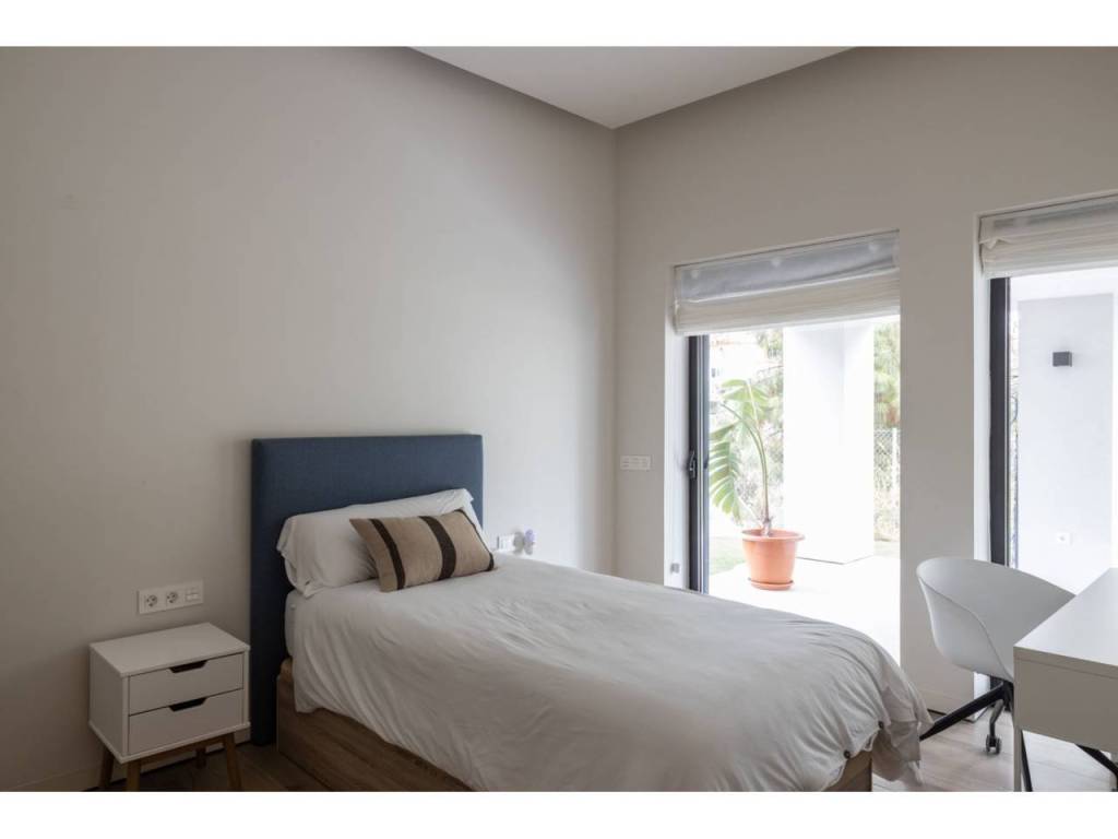 El Atabal sits at an interesting crossroads. Teatinos to one side, the Parque Tecnológico to the other — one of Málaga's most quietly dynamic neighbourhoods, and still largely under the radar. International schools nearby, some of the best in the city. The airport, the centre, the coast — all within reach, none of it felt from inside the house. The villa is newly built and designed around the way families actually live. Three floors, four en-suite bedrooms, sea and mountain views from every level. The main floor runs kitchen into dining into living, opening onto the terrace and pool through full-width glazing. The lower floor is where the house really breathes — three bedrooms, each opening directly onto the covered terrace and out into the garden. Space for children to run, spill outside, come back in. A floor that works as a private wing, a kids' world, or both. The upper entrance level adds a home office and an open terrace with long views. Light throughout. Low-maintenance garden. Private pool. The kind of house that doesn't ask much of you. A short drive from everything. Quiet enough to forget it.