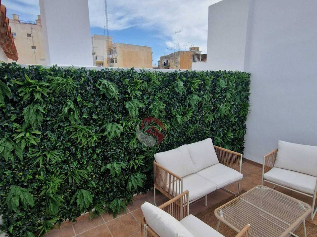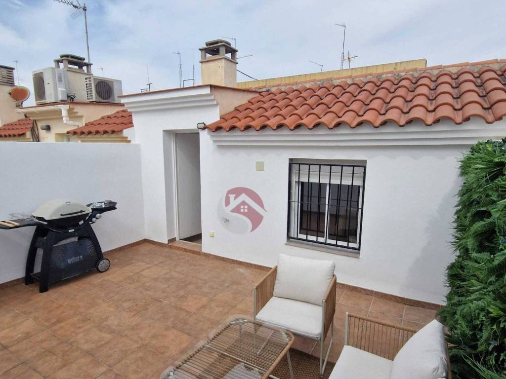 La vivienda consta de 95 m2 distribuidos en dos niveles: en el nivel principal encontramos un hall de entrada, salón comedor con cocina en concepto integrado equipada y amueblada, 1 dormitorio y 1 baño completo. A través de una escalera tenemos acceso a otro dormitorio y una terraza de uso exclusivo con una superficie de 17.59 m2, perfecta para crear una zona de chill out, solarium o zona de barbacoa.