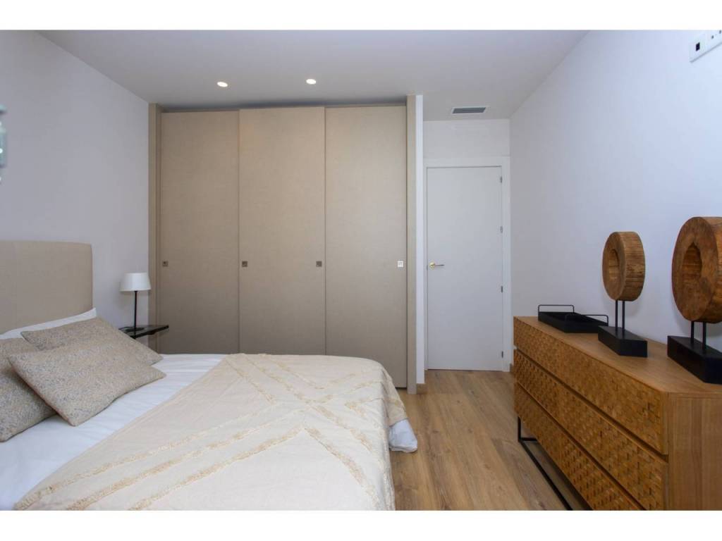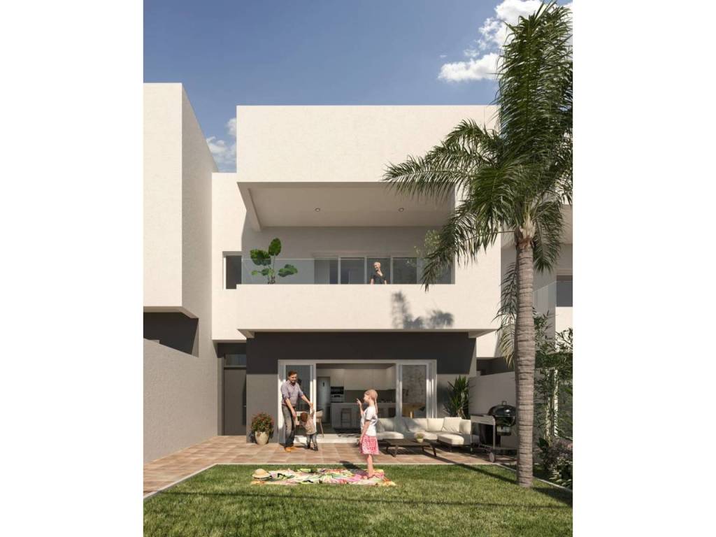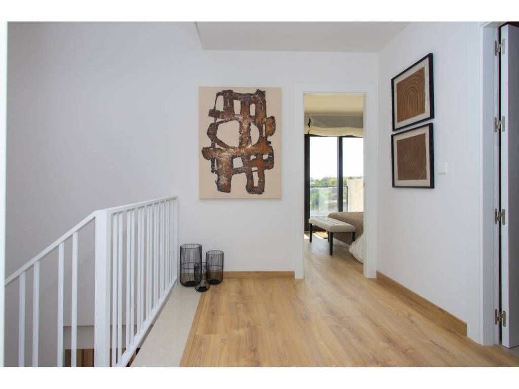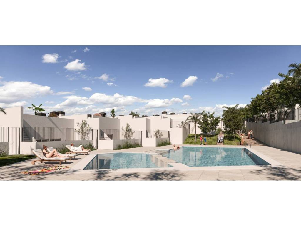 The exteriors of these townhouses are designed to enjoy the Mediterranean climate. Each home features a private terrace, perfect for outdoor relaxation. Additionally, there is a solarium, ideal for sunbathing in the privacy of your home. The presence of a private pool in each townhouse adds a touch of exclusivity, allowing for a refreshing swim at any time of the day. The communal gardens complement the setting, offering a green space for walking or enjoying outdoor activities.