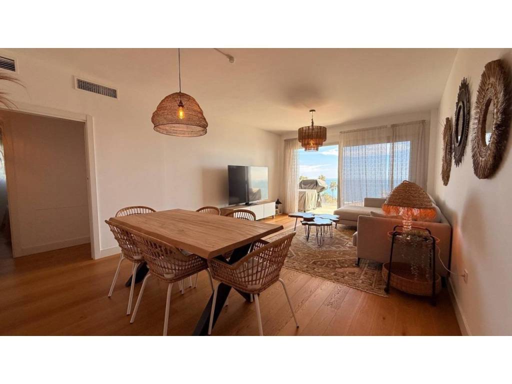 This magnificent first-floor apartment combines comfort, style, and a privileged location on the Costa del Sol. From the living-dining room, you access a spacious terrace with direct sea views – the perfect spot to enjoy the sun, outdoor breakfasts, or unforgettable Mediterranean sunsets.