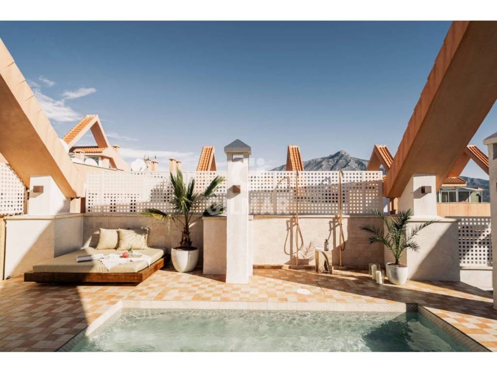 Impresionante ático dúplex de 3 dormitorios con espectaculares vistas panorámicas al mar, al golf y a la montaña, incluida la icónica La Concha. Su diseño combina elegancia minimalista y lujo natural, con techos de doble altura y amplias terrazas privadas desde donde disfrutar inolvidables puestas de sol. La vivienda ofrece detalles únicos como piscina privada, cocina exterior con zona de comedor y relajación, además de sauna, creando un verdadero refugio de bienestar y exclusividad en plena Costa del Sol. Ubicado en una comunidad cerrada en el corazón del Valle del Golf, rodeado de los prestigiosos clubes Los Naranjos, Las Brisas, La Quinta y Aloha, a tan solo 5 minutos de Puerto Banús y de todas las opciones de ocio y gastronomía de Nueva Andalucía. Una propiedad perfecta tanto como residencia principal como segunda vivienda.