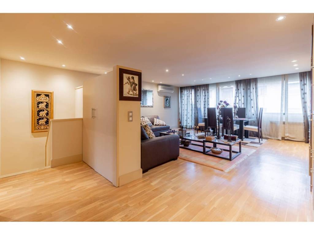 Rez-de-chaussée : grand et lumineux salon-salle à manger avec accès direct à la terrasse-patio, créant un espace ouvert, sophistiqué et parfait pour des moments de détente ou des réunions. Cuisine indépendante, entièrement équipée avec des appareils de haute gamme, des placards sur mesure et un plan de travail en marbre, avec double fenêtre sur l'extérieur. Toilettes d'invités, rénovées avec goût.