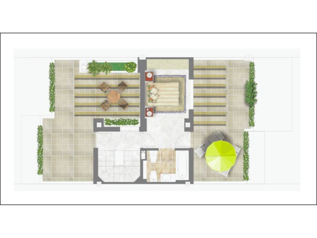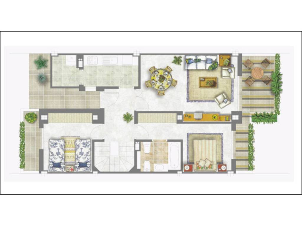 On the first floor, you'll find two bedrooms, one with access to the main terrace, perfect for relaxing. The second bedroom has a small private terrace, ideal for enjoying the fresh air. All bedrooms are equipped with built-in wardrobes and central air conditioning (heating and cooling), ensuring comfort year-round.