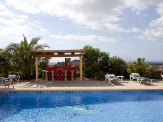 En la parcela completamente cerrada de unos 10.000 m2 se encuentran una casa, un bar exterior, una piscina y grandes terrazas.