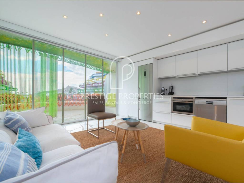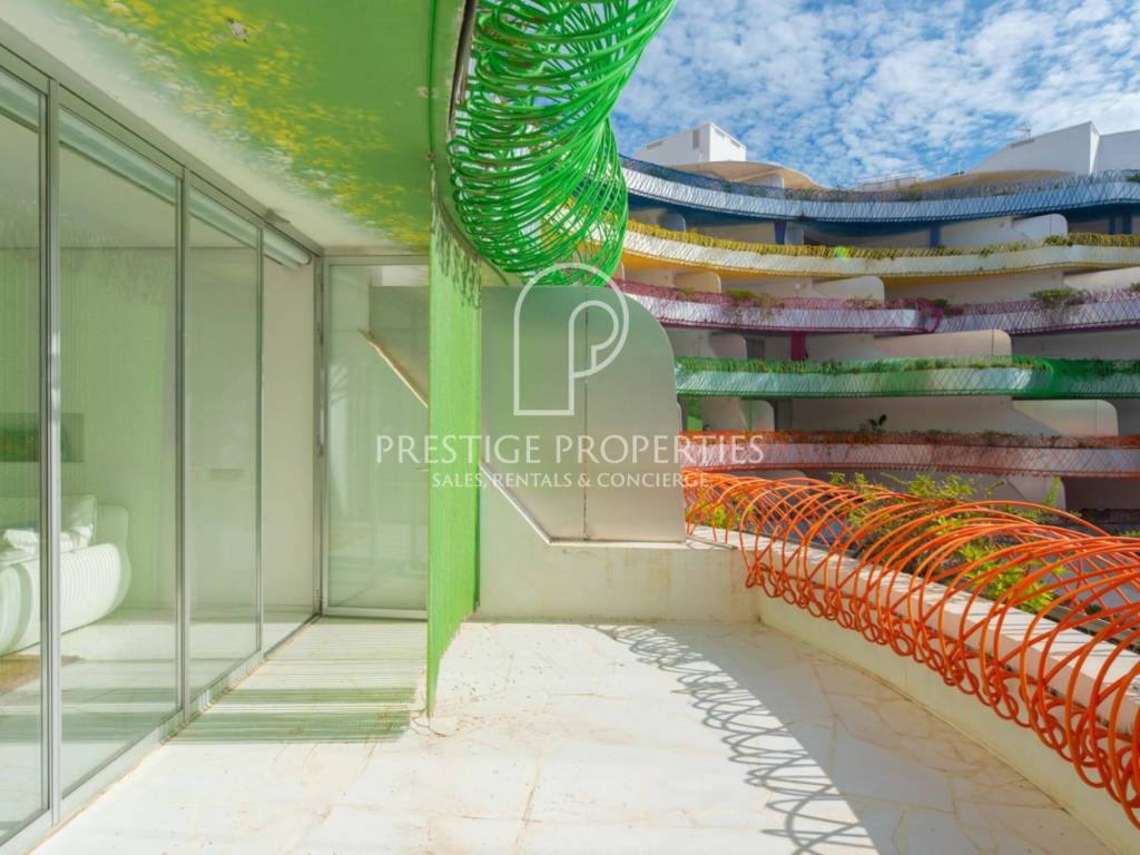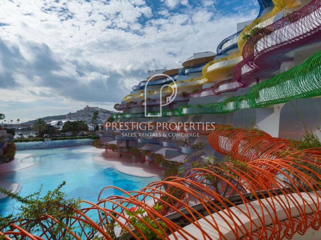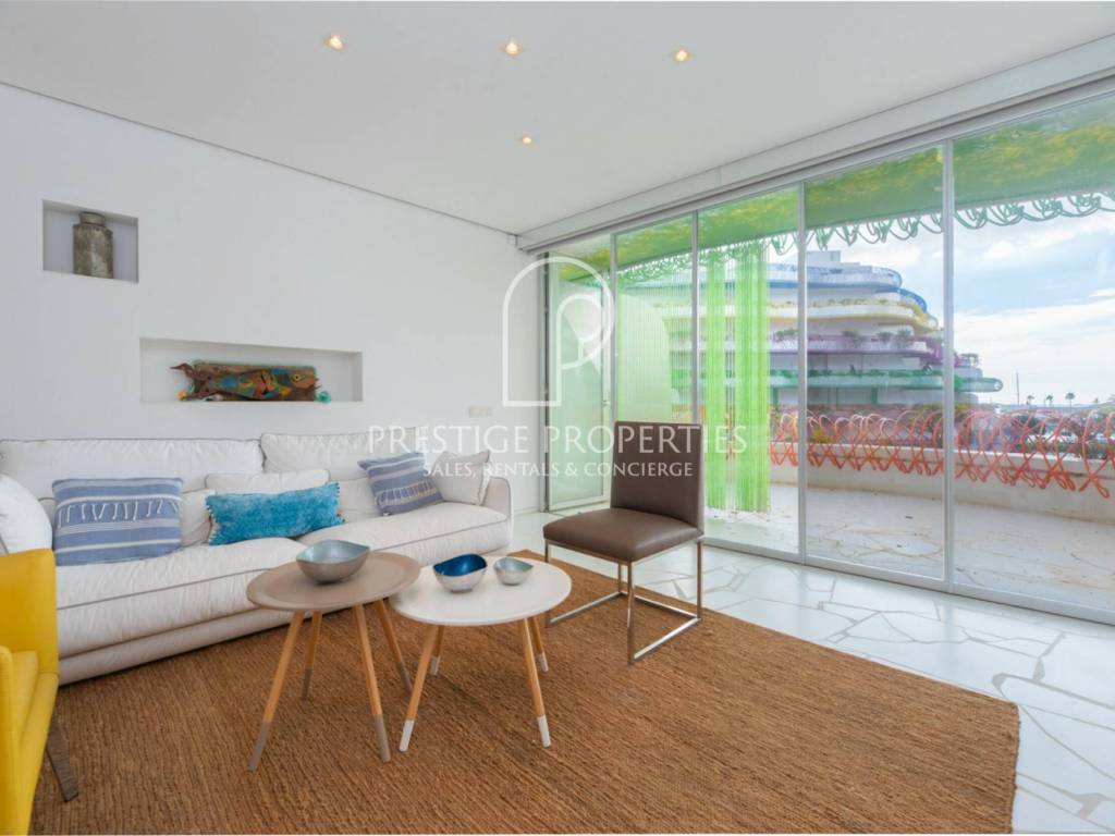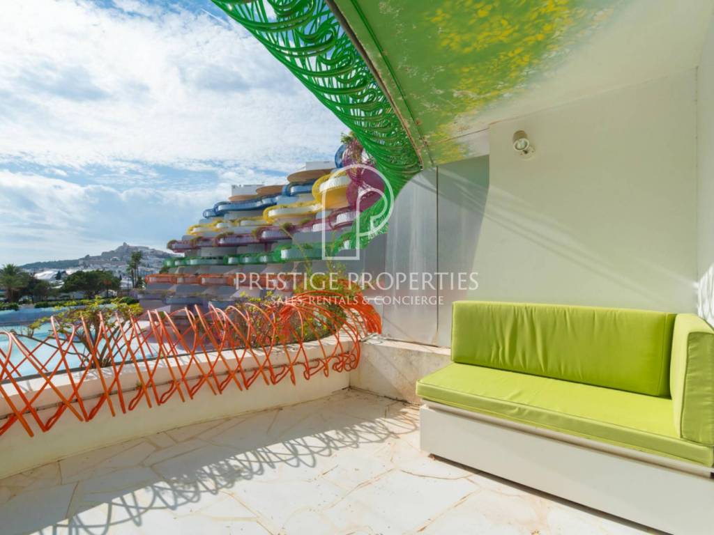 La propriété est située au deuxième étage, dans une position privilégiée sur la promenade du front de mer à Marina Botafoch, au sein de l'un des bâtiments les plus emblématiques d'Ibiza conçu par le célèbre architecte Jean Nouvel..
