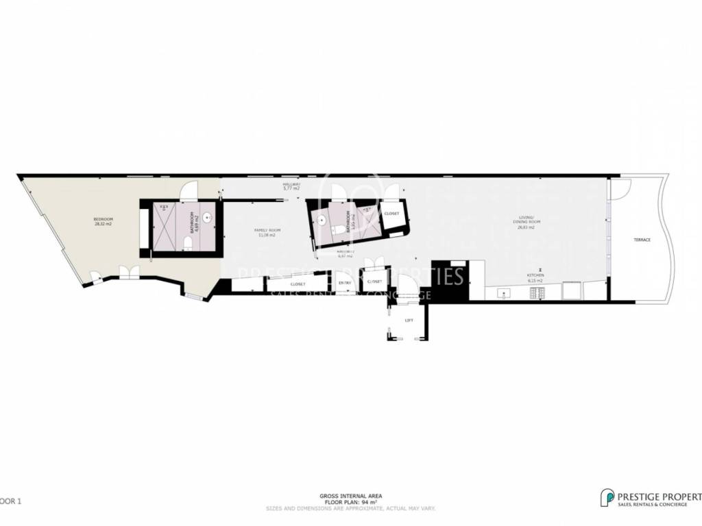 La propriété comprend un salon/salle à manger avec une cuisine ouverte, une terrasse avec vue sur la mer et la belle vieille ville d'Ibiza, ainsi que deux chambres : une double en suite et une autre actuellement convertie en salle de télévision.