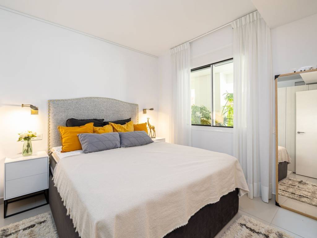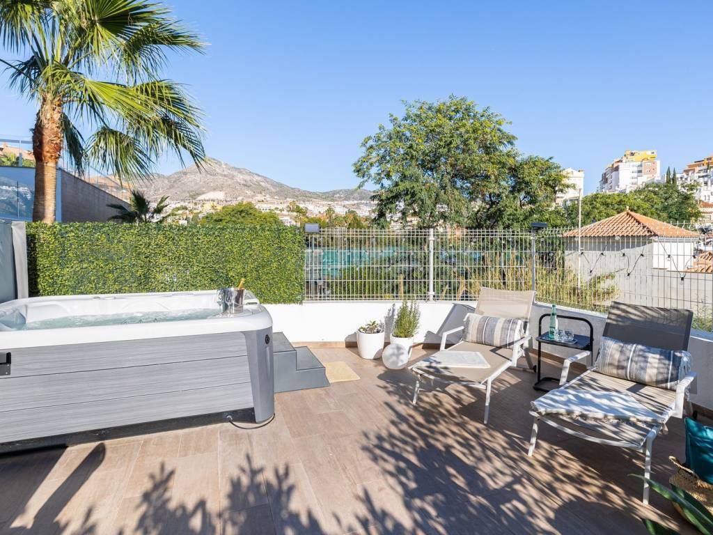 The apartment has a big 48m2 garden with a jacuzzi and barbecue area. On top of that it has a 20m2 private terrace with glass curtains to enjoy it all year round. The apartment has 76m2 and sits 9.5 meters high up from the street level, so it doesnt feel like a ground floor garden apartment. You have great open views of some picturesque Spanish houses and can enjoy the morning sun in your own garden and organise parties in the warmth of the jacuzzi bubbles.