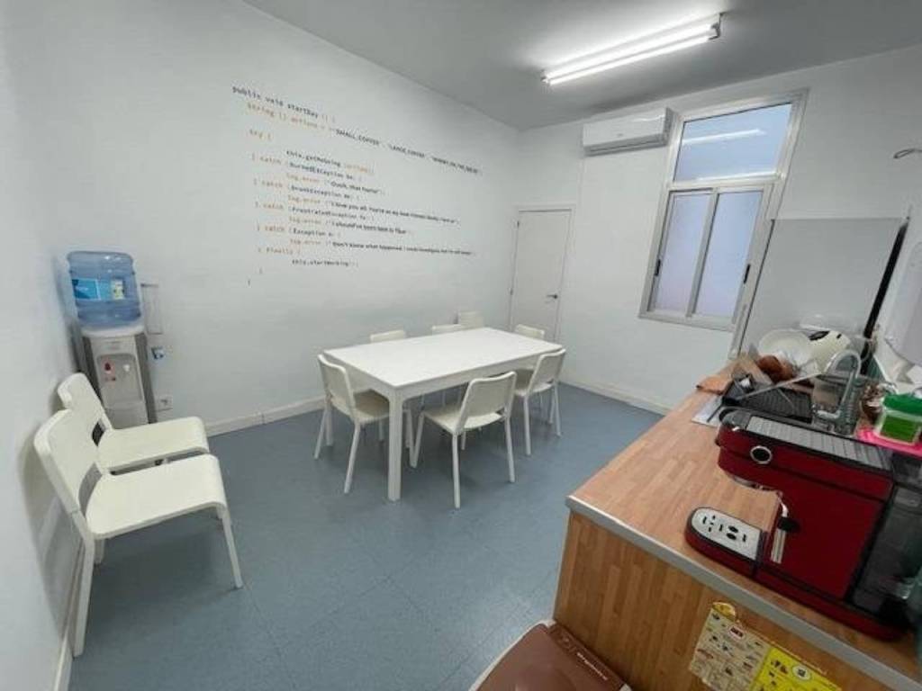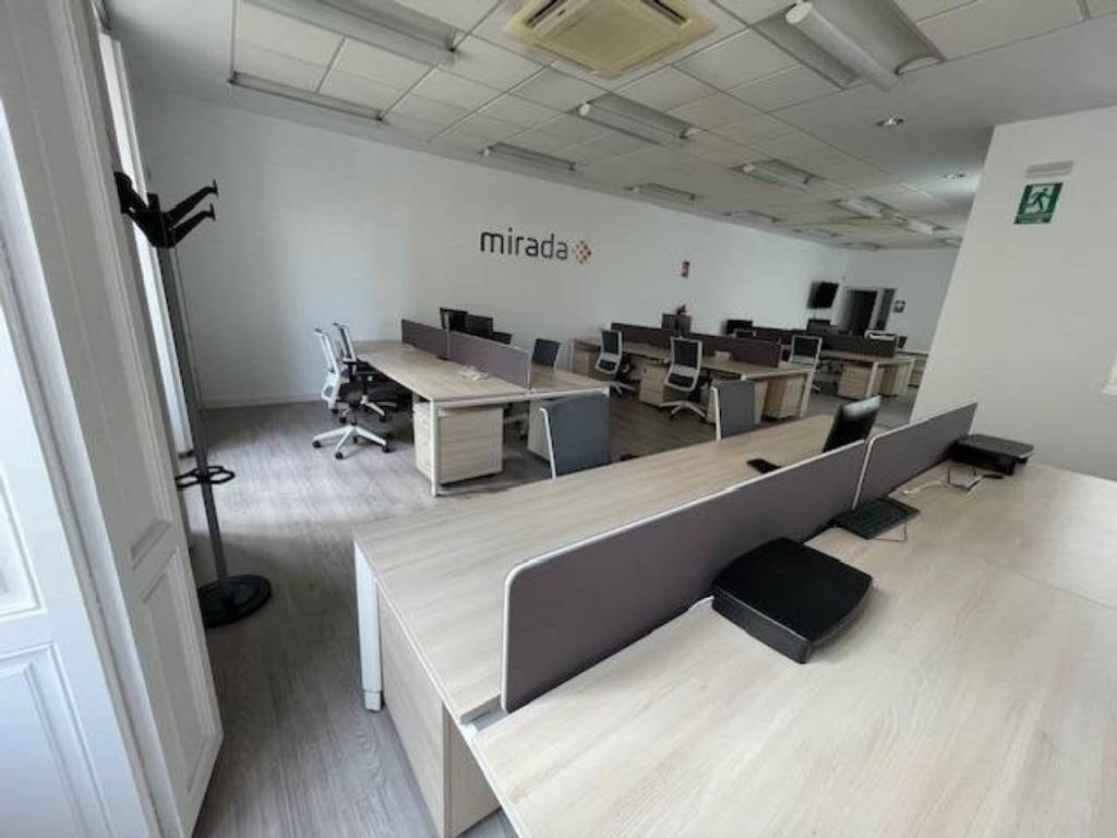La primera oficina cuenta con doscientos setenta y cinco metros cuadrados. Su fachada da a Perta del Sol con Calle Trinidad. Está completamente reformado con hasta 6 espacios distintos, amoblado y con su zona de cocina.
