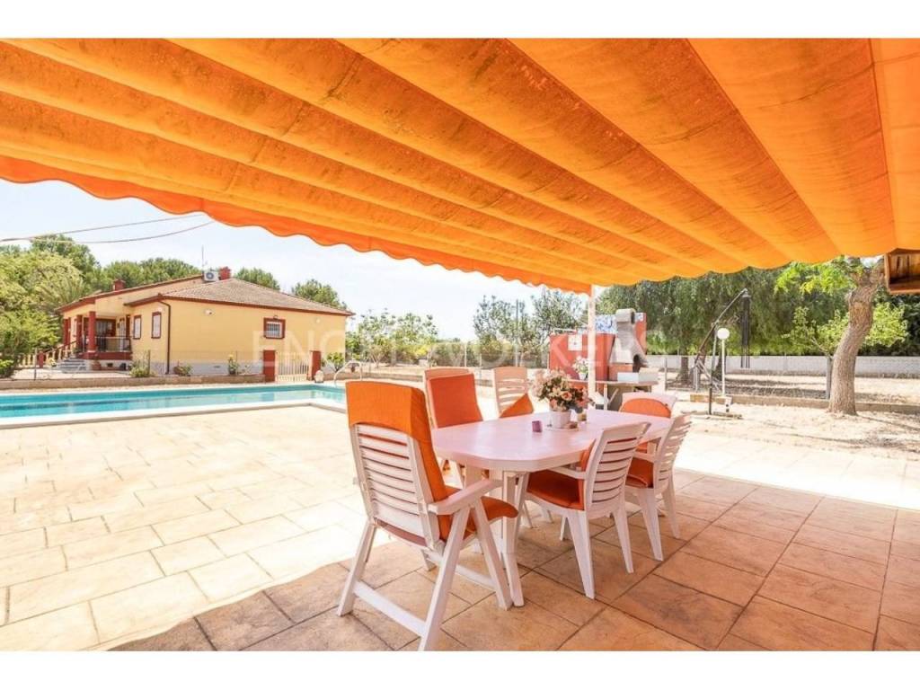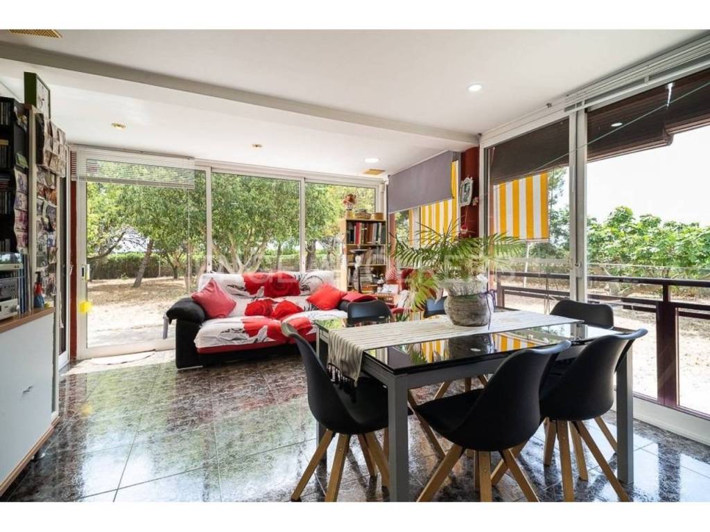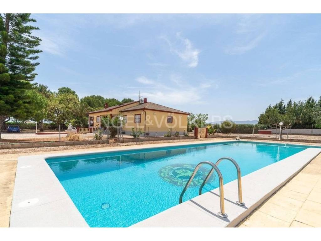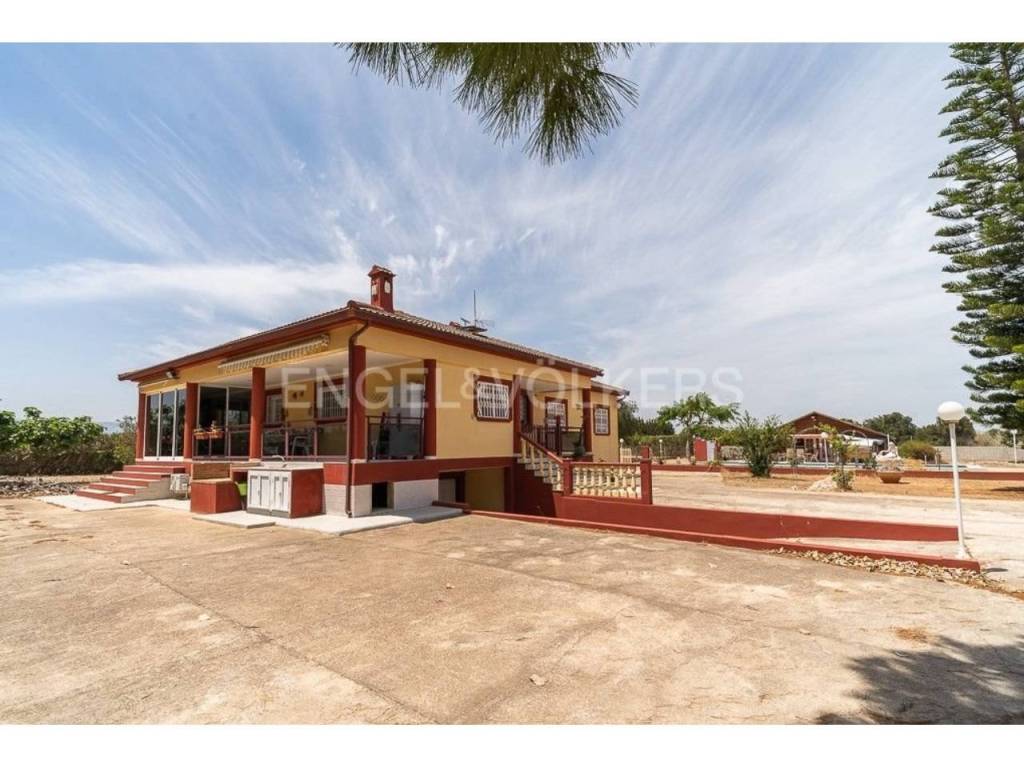 Gran chalet espacioso en El Poblets. En una hermosa zona tranquila en El Poblets es un amplio chalet para una familia. La superficie total del terreno en el que se encuentra esta hermosa casa es de 11.300 metros cuadrados. La casa consta de dos plantas y un sótano. La planta baja tiene una superficie de 200 m2. En la planta baja hay 4 dormitorios grandes, un amplio salón con chimenea, cocina grande, 2 baños, un segundo salón con chimenea, una terraza acristalada 100m2 y terraza abierta 100m2 y un lavadero. Todas las habitaciones tienen aire acondicionado y calefacción.