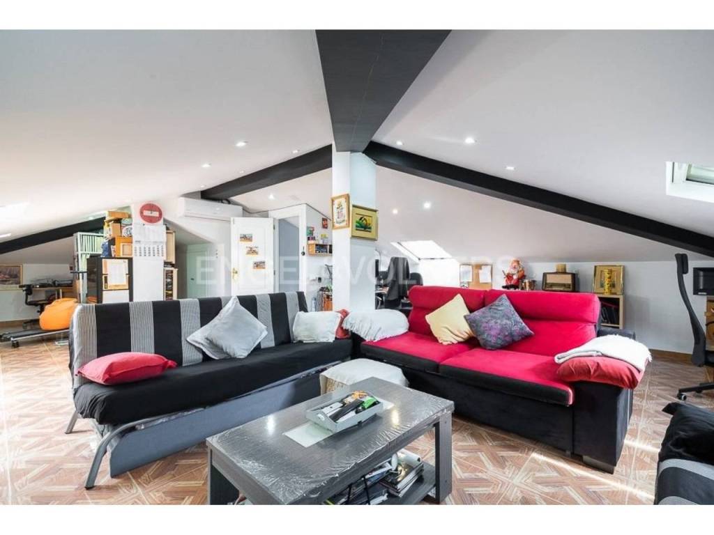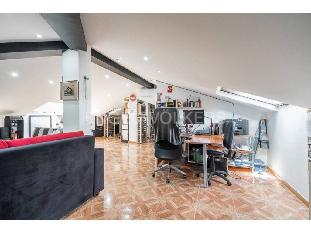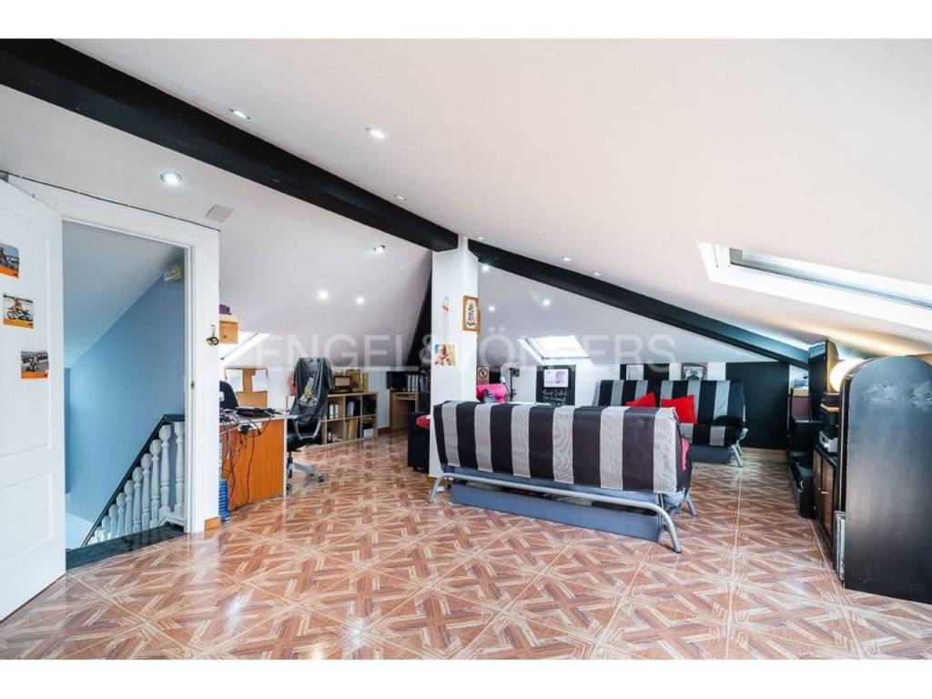En la primera planta hay un altillo que está ocupado por una habitación de 58 metros. En el sótano hay un amplio garaje para tres coches, trastero, aseo y lavadero. La superficie total del sótano es de 140 m2.
