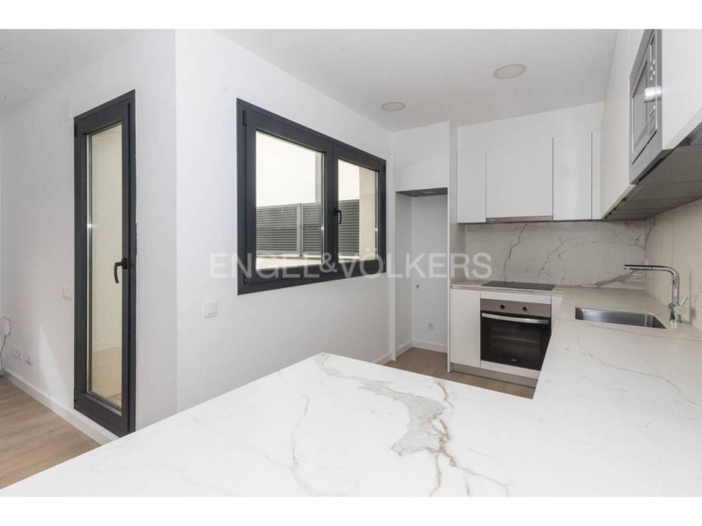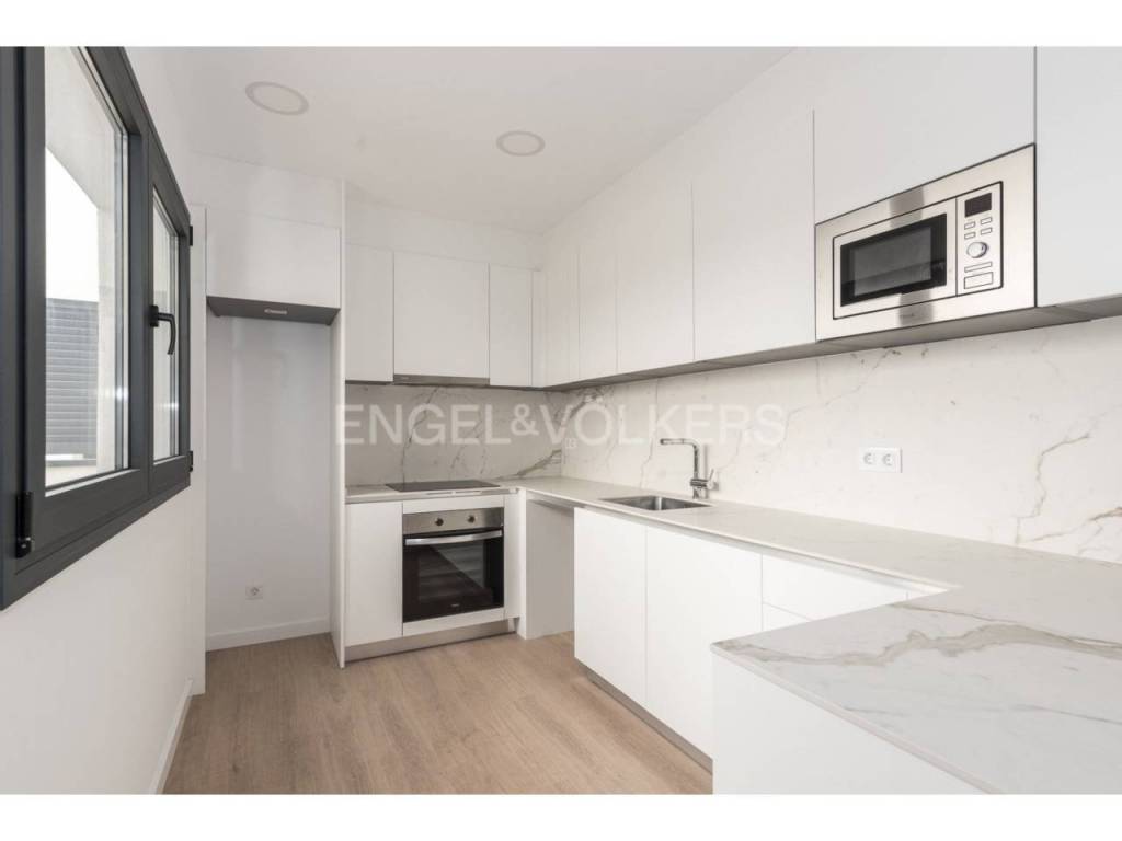 Acabados de gran calidad, cocina con mármol porcelánico, electrodomésticos de alta gama, fregadero inox con grifo mezclador, baños con revestimiento Porcelanosa y grifería Roca, aerotermia...
