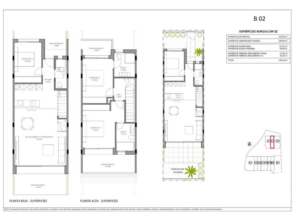 All properties will have 3 spacious bedrooms and 3 elegant bathrooms to provide comfort and privacy to its inhabitants. The spacious living-dining room, with its integrated modern kitchen, will be the heart of the house, where family and friends will be able to gather and enjoy unforgettable moments. In addition, the house will be equipped with pre-installation for ducted air conditioning. Cutting-edge technology will be a prominent feature of this house, as it will be fully automated thanks to an advanced home automation system. From lighting control to security management, everything will be at your fingertips.