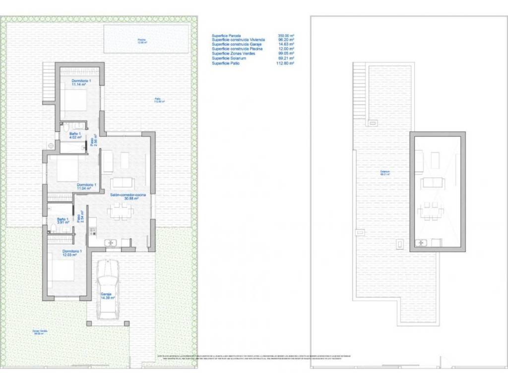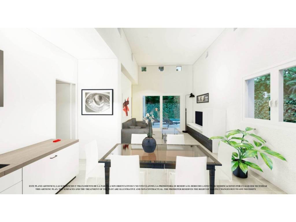 This property consists of 3 bedrooms and 2 bathrooms (one of them en suite), open plan kitchen with the living room, fitted wardrobes, solarium, private garden with parking space and private swimming pool.
