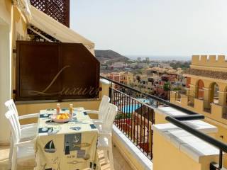 Penthouse d'une chambre avec terrasse et toit-terrasse, vue mer à Los Cristianos, Granada Park. Luxury World Properties est heureuse de proposer un charmant appartement avec toit-terrasse dans le complexe Granada Park, à Los Cristianos. Avec une surface habitable de 56 m, le bien se compose dun salon-salle à manger lumineux avec cuisine ouverte, 1 chambre, 1 salle de bains et un agréable espace extérieur comprenant une terrasse et un toit-terrasse dune surface totale de 36 m avec vue sur les montagnes, la mer et les espaces communs du complexe.