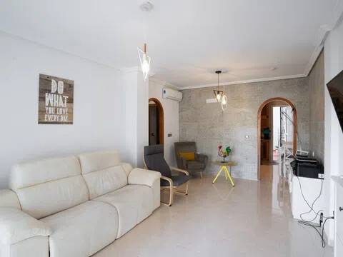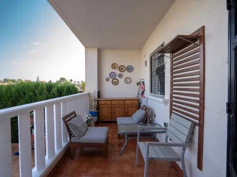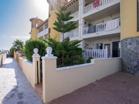 En SkandiaMäklarna, Torrevieja, nos complace dar la bienvenida a este apartamento en planta baja, impecablemente cuidado, en la tranquila pero amplia zona de Lomas de Cabo Roig. El apartamento cuenta con dos dormitorios, un baño, salón, cocina y tres amplios patios. El primero se encuentra a nivel del suelo y es una terraza que combina el jardín con la terraza. La segunda terraza está fuera del salón y la tercera es un patio desde la cocina que puede utilizarse como trastero o patio. El apartamento está en buen estado, así que desempaque sus maletas y empiece a disfrutar de España. La comunidad cuenta con piscina comunitaria. Lomas de Cabo Roig es una zona extensa donde encontrará todos los servicios, como restaurantes, bares y un supermercado. Hay dos centros de negocios de nueva construcción y varios proyectos de vivienda en marcha, por lo que tenemos una zona en pleno crecimiento. A 5-10 minutos en coche encontrará cuatro campos de golf de alta gama, varias playas y el centro comercial más grande de la costa, La Zenia Boulevard. Orihuela Costa es una zona animada todo el año con opciones de entretenimiento como minigolf, bolos, rutas de senderismo, casino, etc. Aquí hay opciones para todos los gustos. Este apartamento es ideal para quienes buscan un apartamento fácil de mantener con amplios patios en una zona tranquila y agradable. ¡Bienvenidos a casa!