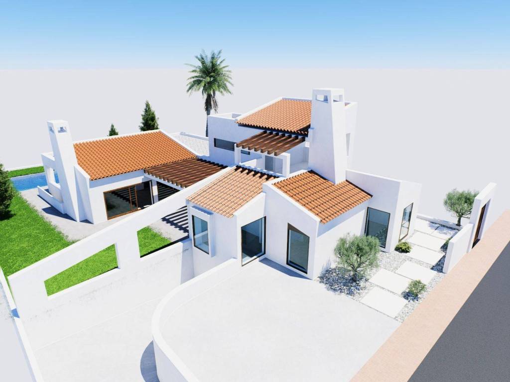 La casa está construida con materiales de primera calidad: aluminio con rotura de puente térmico y cristales con cámara, puertas lacadas en blanco de 2,40 metros de altura, y una puerta de entrada pivotante de 2,60 metros. Además, cuenta con suelos radiantes, sistema de aerotermia para agua caliente sanitaria, aire acondicionado en toda la vivienda, placas solares y todo está automatizado para mayor comodidad.