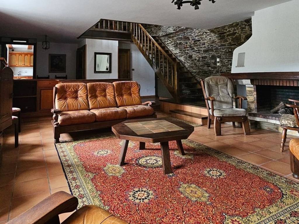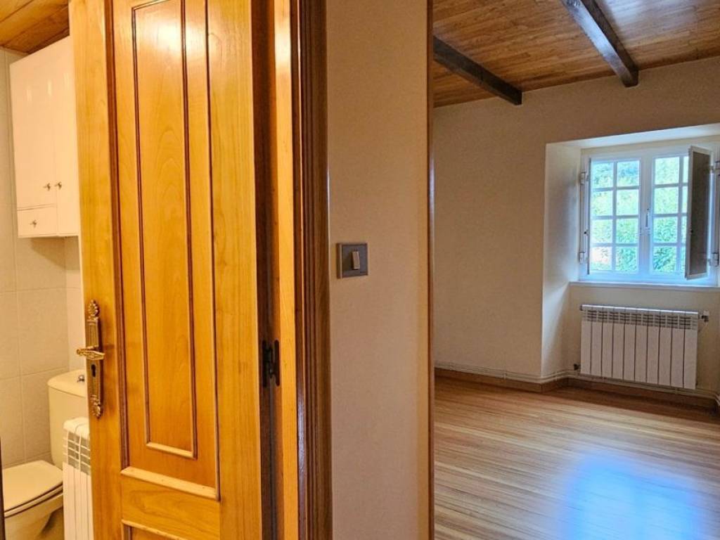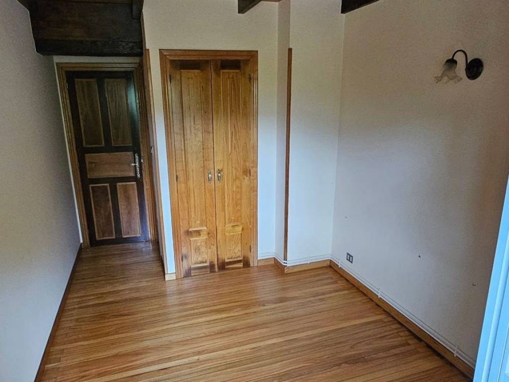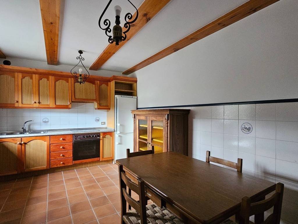 Características de la vivienda • Superficie construida: - Planta baja: 100 m² - Planta alta: 100 m² - Ático con tramo longitudinal practicable en posición erguida - Garaje/almacén con techo alto comunicado con la planta baja - Almacén/taller anexo - cabozo tradicional • Exterior: - Explanada delantera pavimentada con losa - Explanada trasera con pilón - Terreno de prado apto para árboles frutales o huerto, con acceso desde la explanada trasera • Distribución interior - Planta baja: salón, cocina, aseo, acceso directo al garaje/almacén - Planta alta: tres dormitorios, tres baños, balcón, voladizo amueblado y boca del horno - Acceso entre plantas mediante escalera recta de roble, cómoda y decorativa